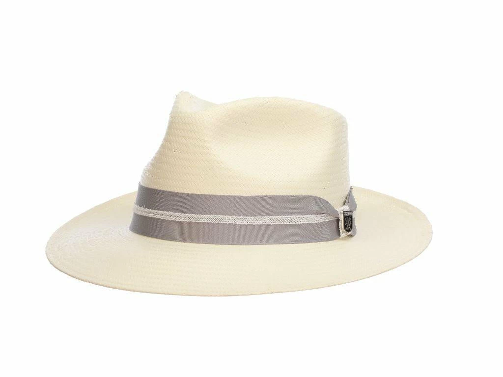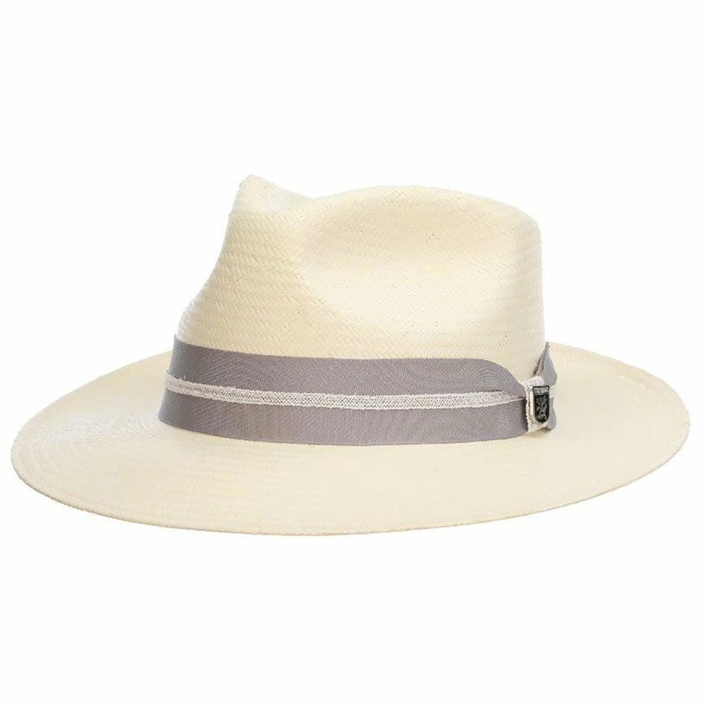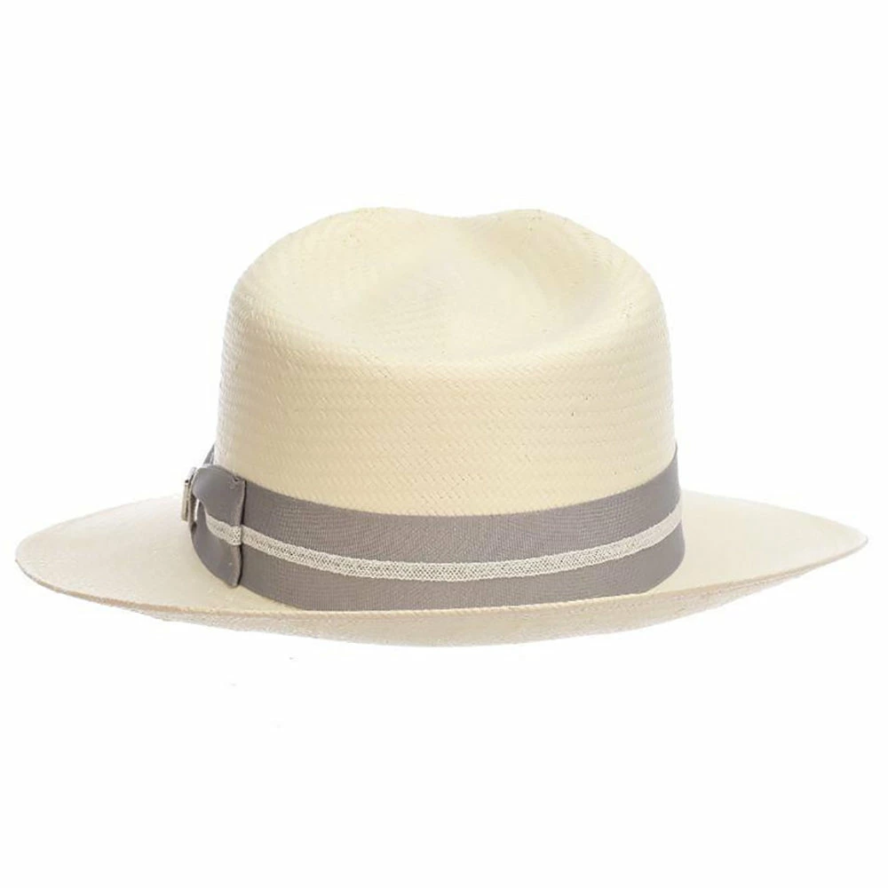 The Stacy Adams Bennett Toyo Straw Fedora is a lightweight and breathable summer hat this is sure to be a hit this season. The toyo straw boasts a beautifully natural light coloration that is perfect for matching with bright summer colors. This hat features a traditional fedora construction including an indented teardrop crown as well as a slight pinch at the crown’s front. The grosgrain hat band features an intricate web overlay and an elegant hat pin to top off this regal look. The hat band itself is available in three gorgeous tones that are sure to suit anyone’s summer wardrobe. This hat’s brim is approximately 2 ยฝ” wide to provide moderate shade for the face and eyes on hot summer days.