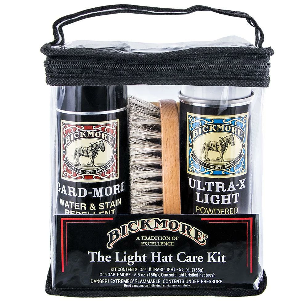 Another excellent product that you must have if you own a light-colored hat that is made of felt is Bickmore’s Light Felt Hat Care Kit. Give all of your felt hats that loving touch by using this kit, which includes Gard-More water and stain repellent and Ultra-X Light powdered hat cleaner. The kit includes not only the two aerosol spray cans but a light-colored brush for cleaning your hats and a reusable zippered case to store everything within. The cans or Gard-More and Ultra-X Light are 5.5 ounces each. You can also find the helpful brochure on how to care for your hat included in the kit.