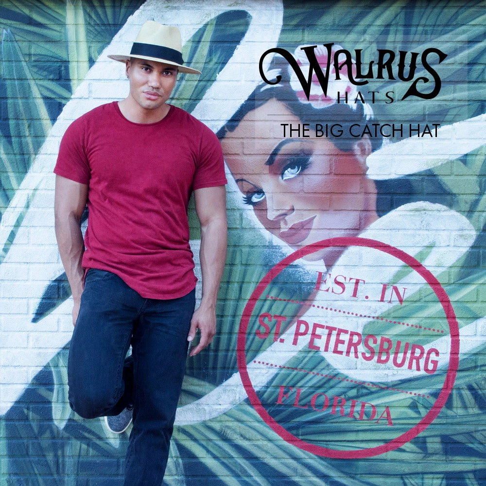 Reel in a big one with the Big Catch straw fedora hat by Walrus Hats. The wide brim is perfect for keeping those sun rays out of your face and protecting you from harmful UV rays. Sail in style and enjoy those longs fishing trips out on the open sea with this crisp, cool fedora. The Big Catch consists of 100% paper braid straw, features an elastic sweatband, hat band and a Walrus Hats hat pin.