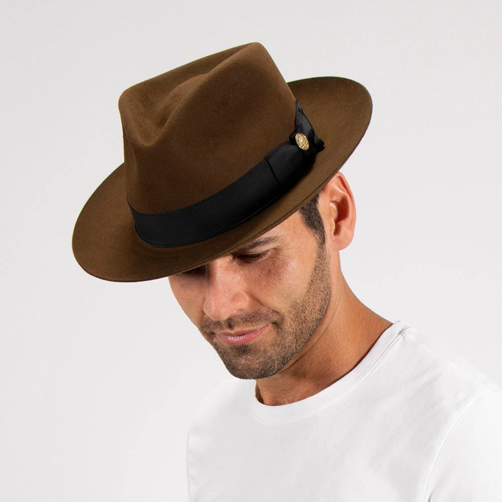 A man in a classic suit and tie wearing this hat makes you think of Humphrey Bogart as he stands on the tarmac with Ingrid Bergman. A man’s suit jacket, soft t-shirt and leggings can give a woman that Lauren Bacall look that was so popular back in the 1940s. The hat is made in the USA and includes a roan sweatband so you remain comfortable even on warm days.