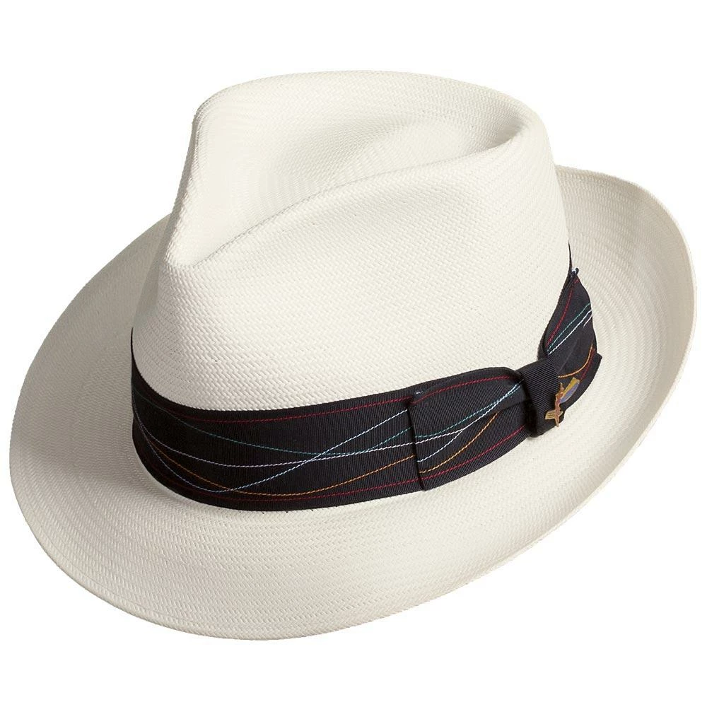 This is a great hat if looking for an upgrade to your normal fedora, we love it. This Santana Borealis straw fedora has a timeless style and looks like something Frank Sinatra would wear to the beach. It has the white style like a Panama hat, but is made of a light Shantung straw which allows for an effortless breathability.