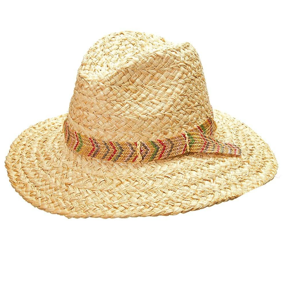 Scala makes plenty of straw hats, but none are as relaxed as this wide brimmed fedora. It’s made of a generous and thick straw. Definitely a beach-bum hat. And that multicolored hatband gives is a Mexican twist.