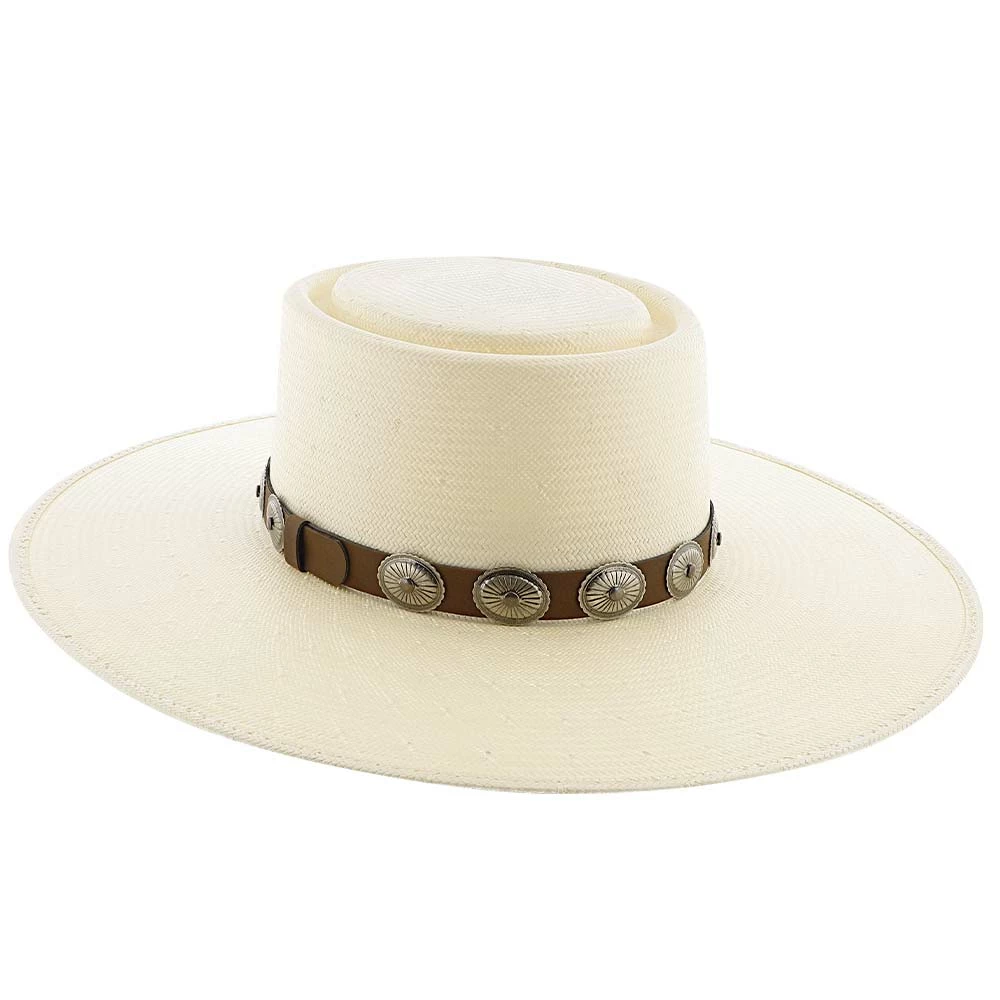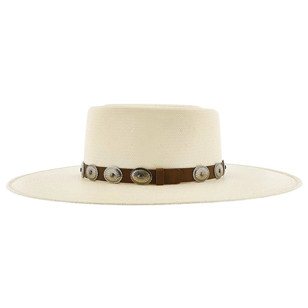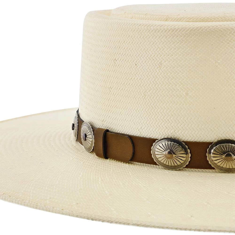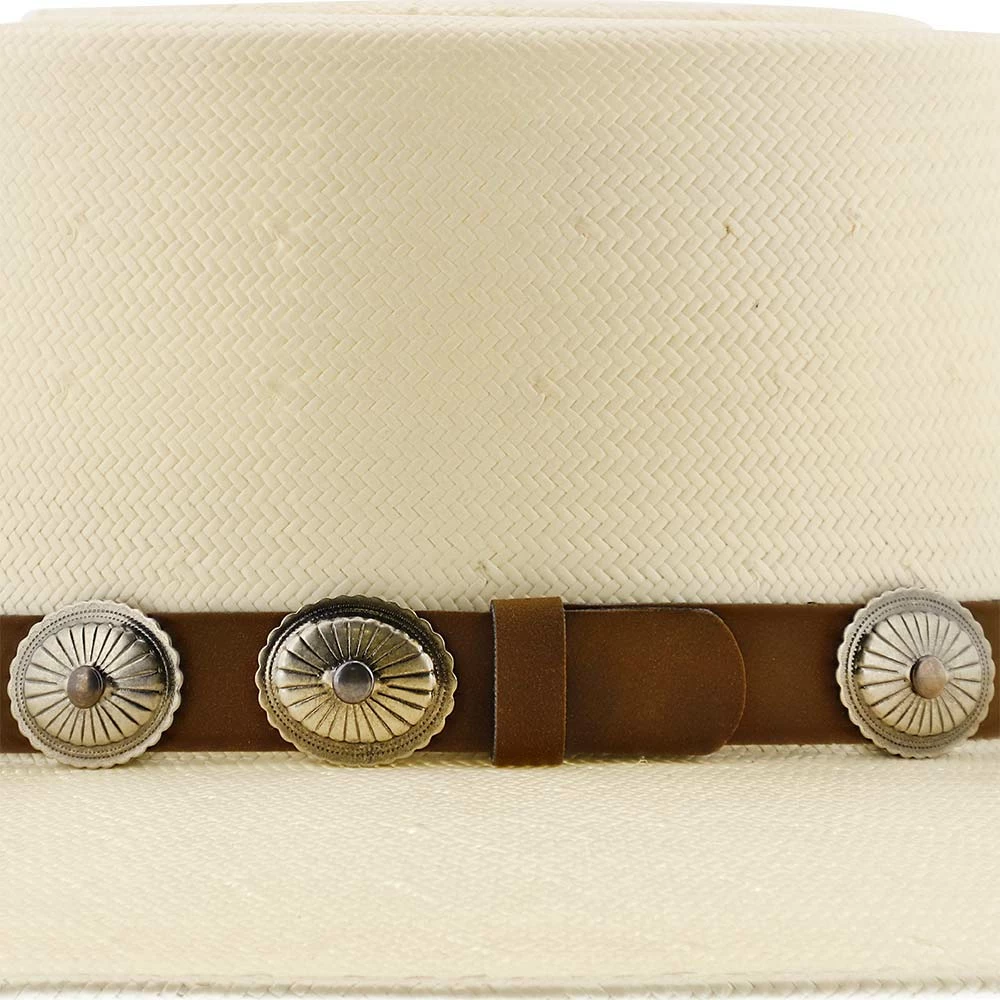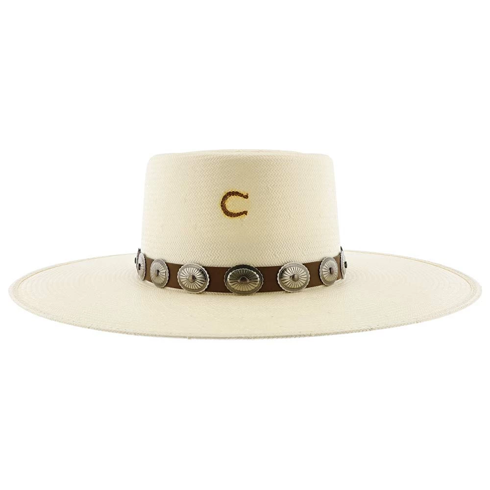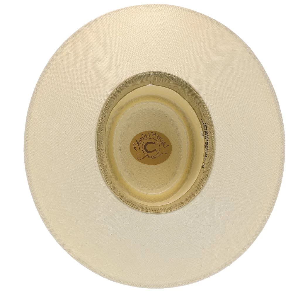 Made from 100% shantung straw, the hat is breathable and durable, perfect for any types of conditions. A brown, leather band wraps around the hat, with vintage metal conchos neatly adorning the band. The classic shoehorn letter โCโ, trademarked from Charlie 1 Horse, is engraved on the front of the hat. DRI-LEXยฎ technology is the material for the hatโs sweatband, making it ultra-absorbent for all moisture.