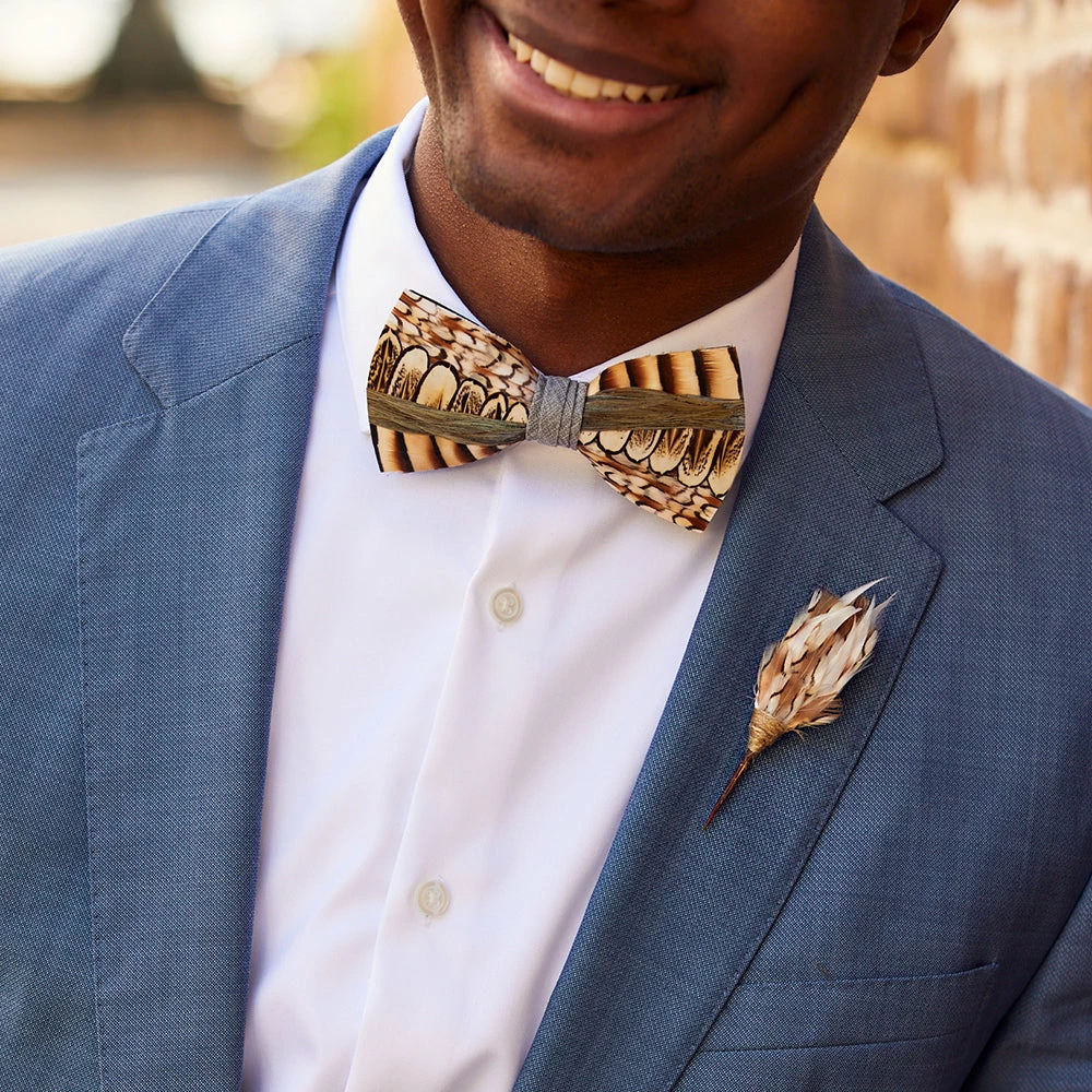 - Feathers for each plum phicket pin are hand-selected, giving each pin a unique coloring.