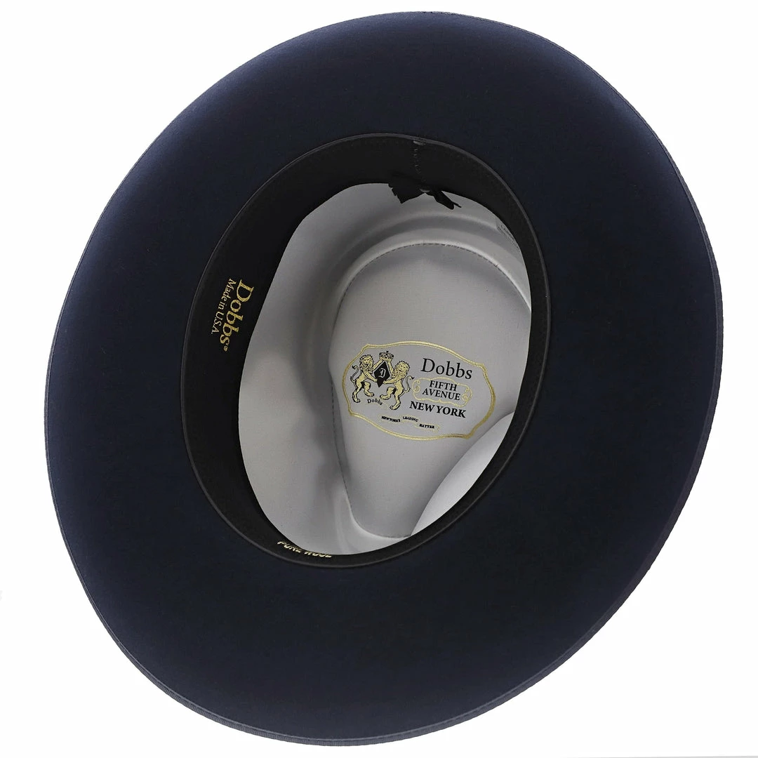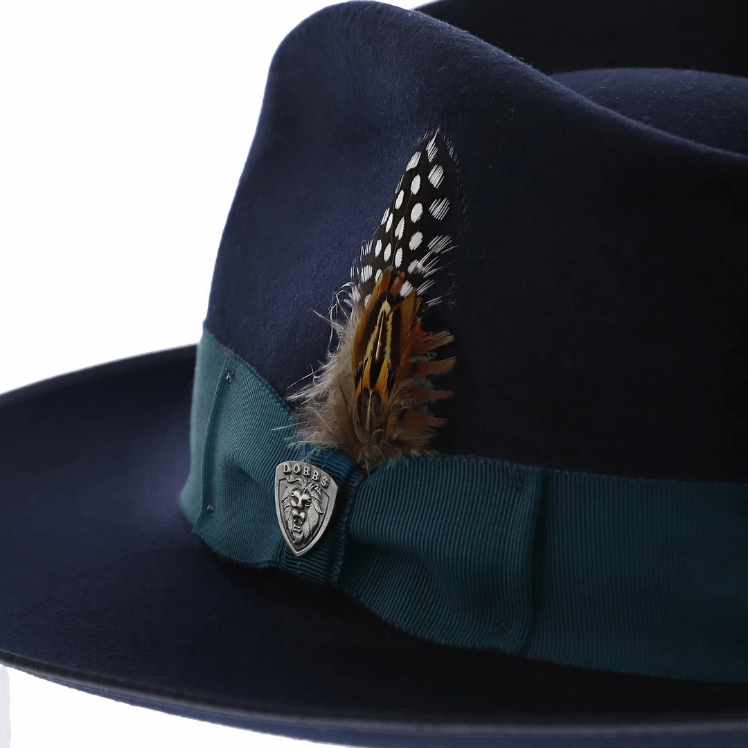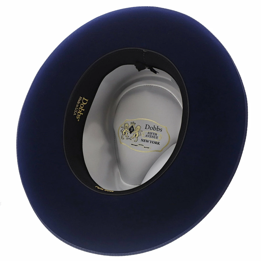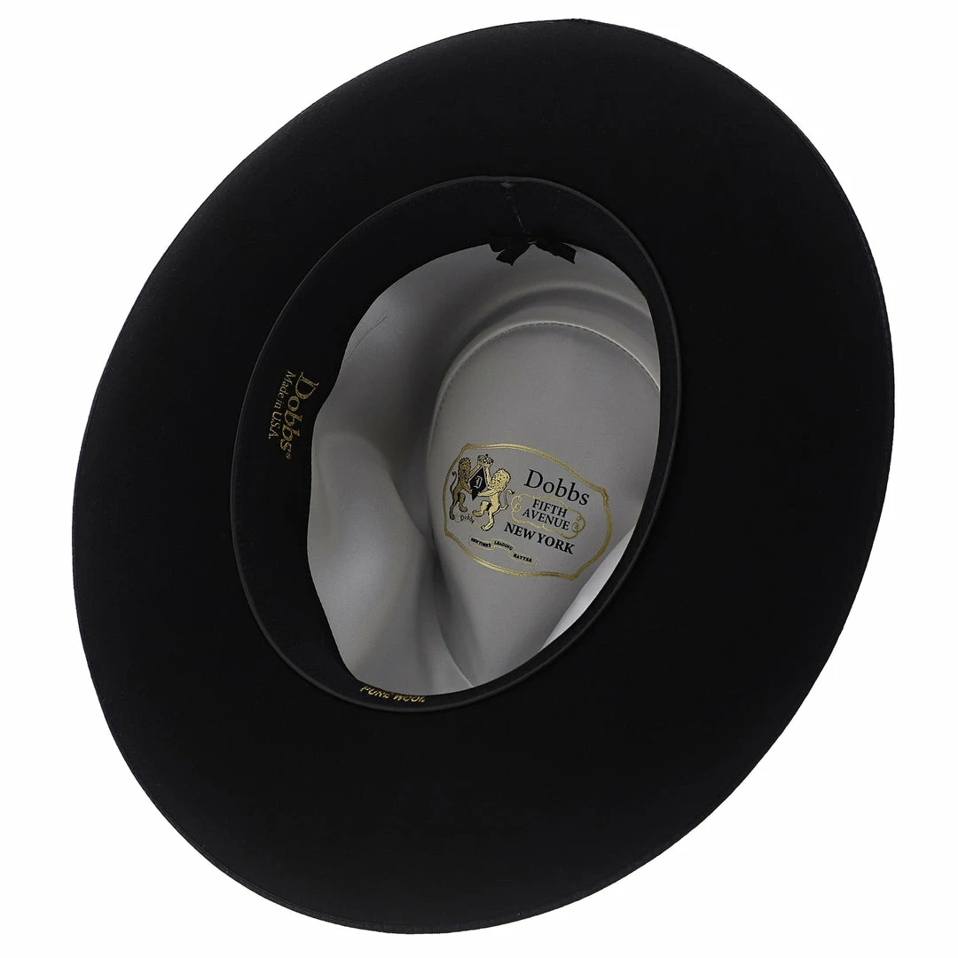 Made in the USA this limited edition Dobbs fedora is made of 100% wool felt and trimmed with a grosgrain ribbon band. Each brim is bound in matching grosgrain ribbon with feather accents. Adorned with a metal Dobbs Hat pin, this stunning fedora is finished with satin lining and DRI-LEX® sweatband for comfort.