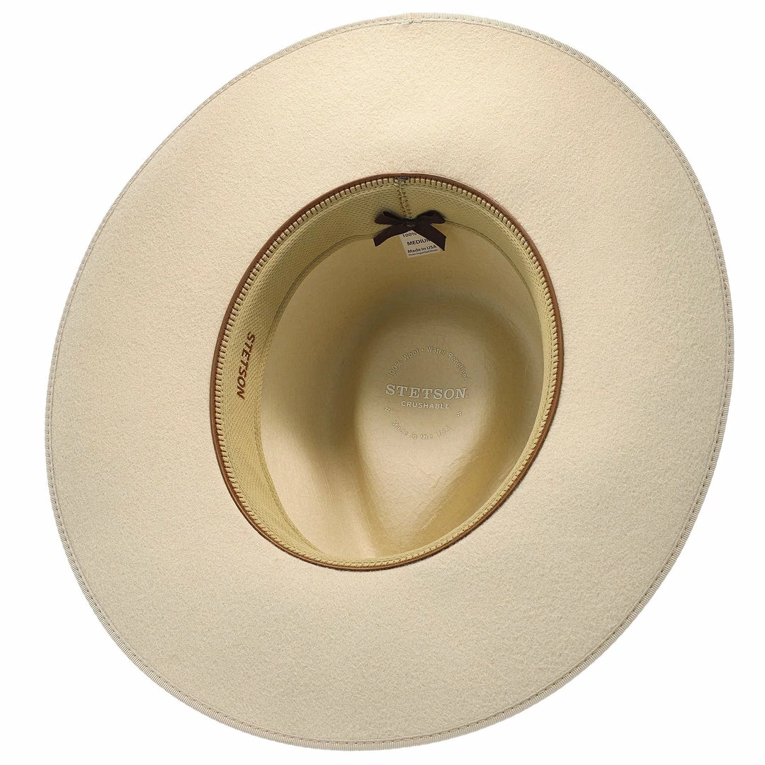 Distressed trim brings color and a fresh look to this Stetson wool fedora, a handsome hat in premium fabric for lasting style.