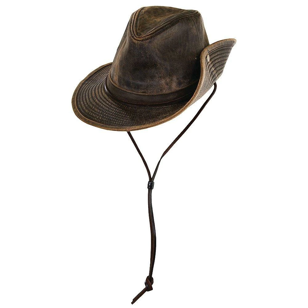 Be at home in the bush with this Dorfman Pacific Outback hat. The left brim snaps up, historically, so the Australian military could perform accurate drill movements, and eventually found its way into the Outback. This weathered Aussie hat gives you that outdoor exposure look from the start, making whatever journey you’re on a fashionable one.
