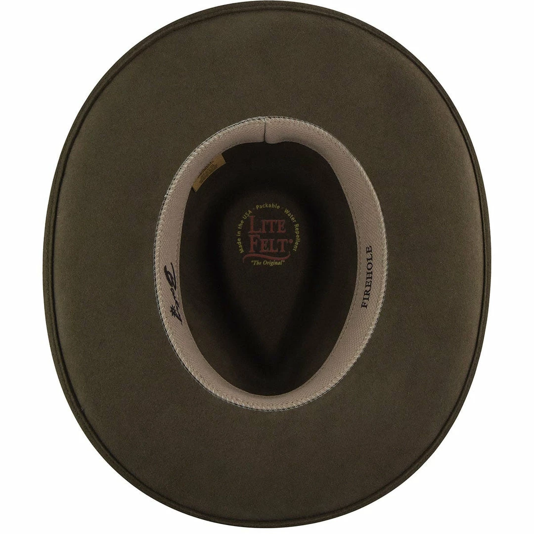 The Baileyยฎ Firehole is made with proprietary LiteFeltยฎ, a treated wool that is durable, shape retentive, and water repellent. The Firehole boasts a leather hatband with leather lace trim, a pinch front cassidy crown, and a 3 1/4″ brim. It is finished with a Dri-Lex sweatband that will keep you cool, dry, and comfortable all day long.
