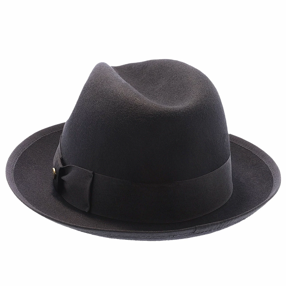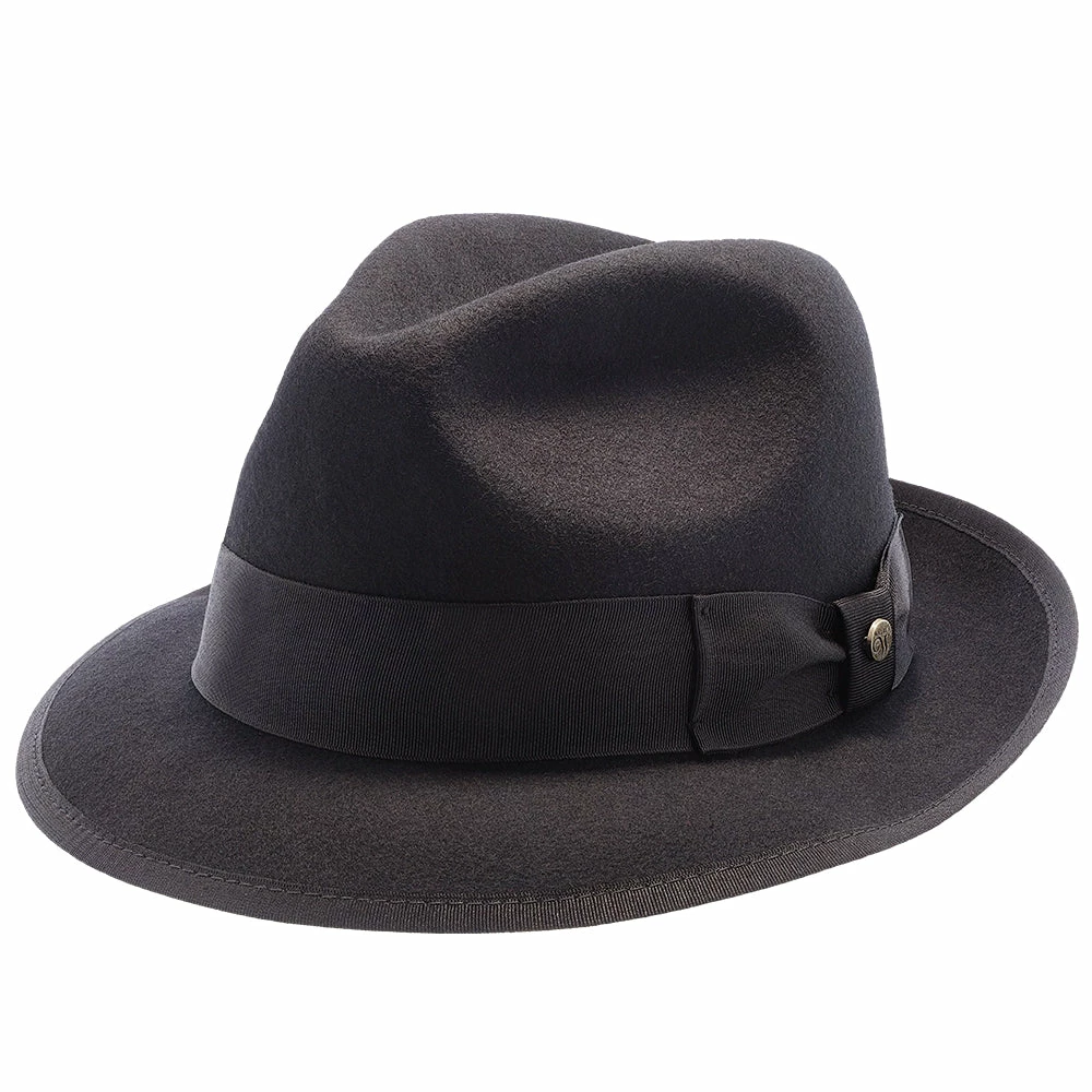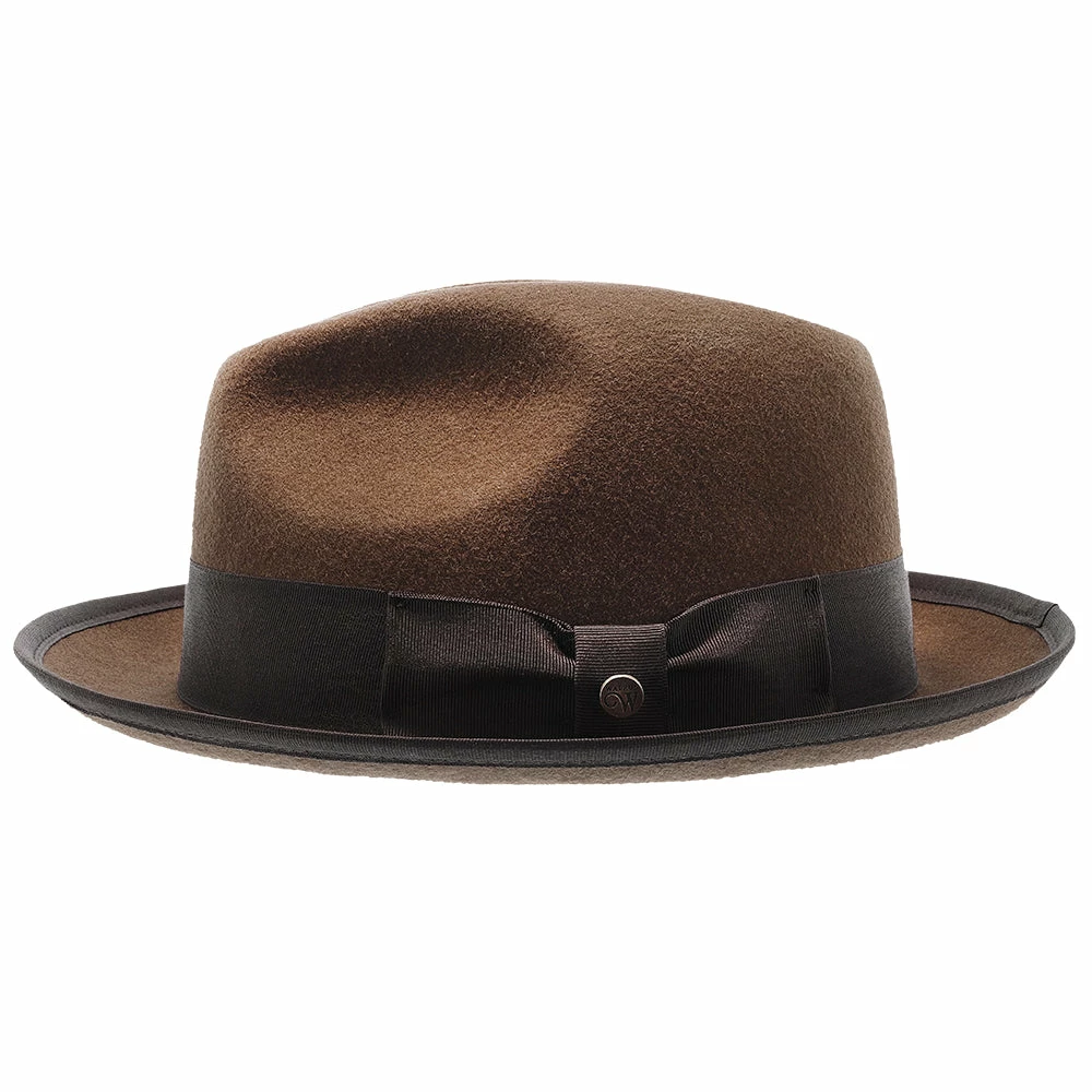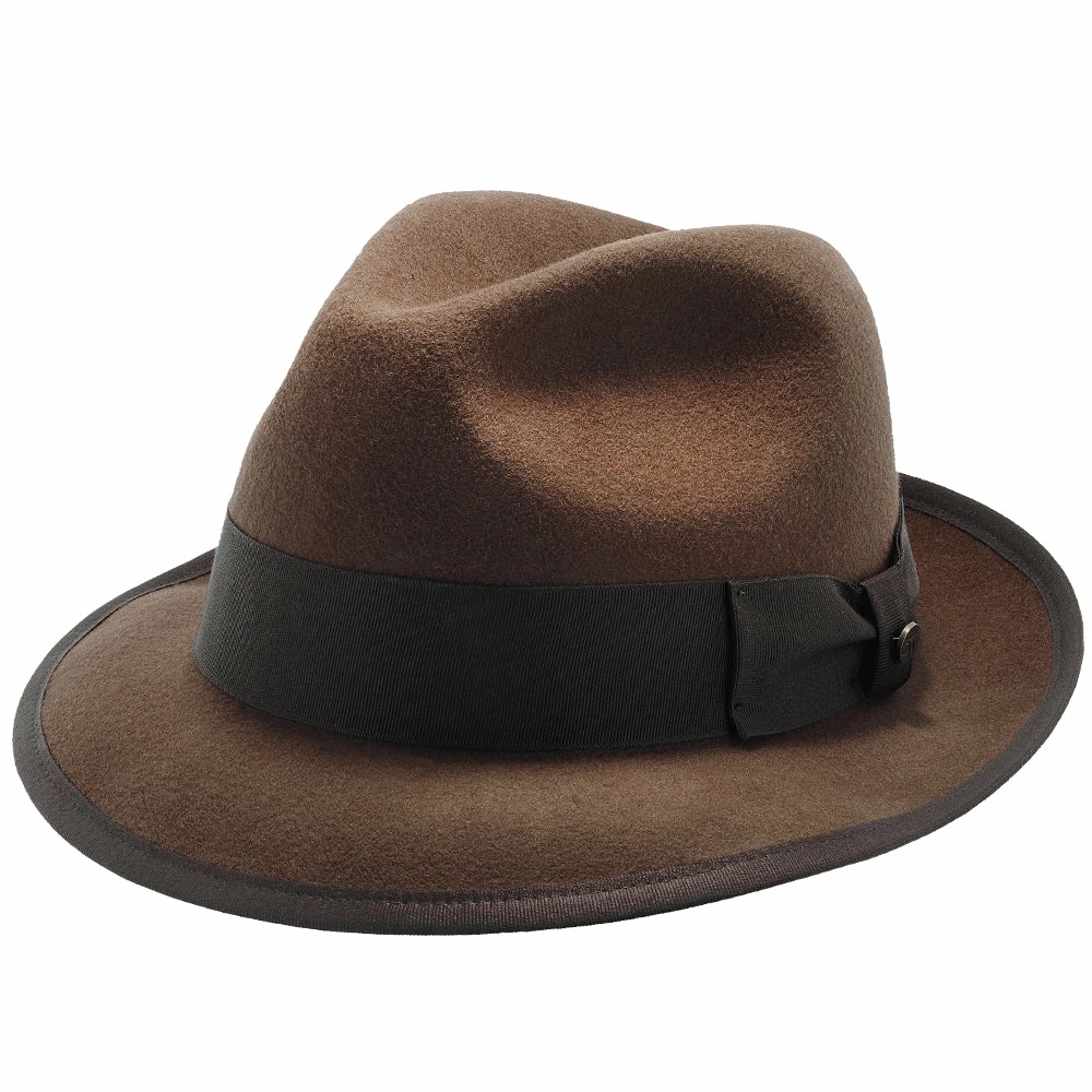 The Layover is your ticket to an easy, breezy, and regally relaxed style. This fine hat features all the hallmarks of a traditional fedora including a pinched crown, snap brim, and a delightfully thick grosgrain hatband bearing a Walrus Hats pin. Wear the brim snapped up for a classic look or snap it down over your forehead to create an air of mystique! At its highest point, the crown height is approximately 3.875″. This hat is featured in four colors for endless mixing and matching possibilities. Whether you prefer a classic look or a touch of modern-chic, the Layover should be your first and last stop on the way to effortless style!