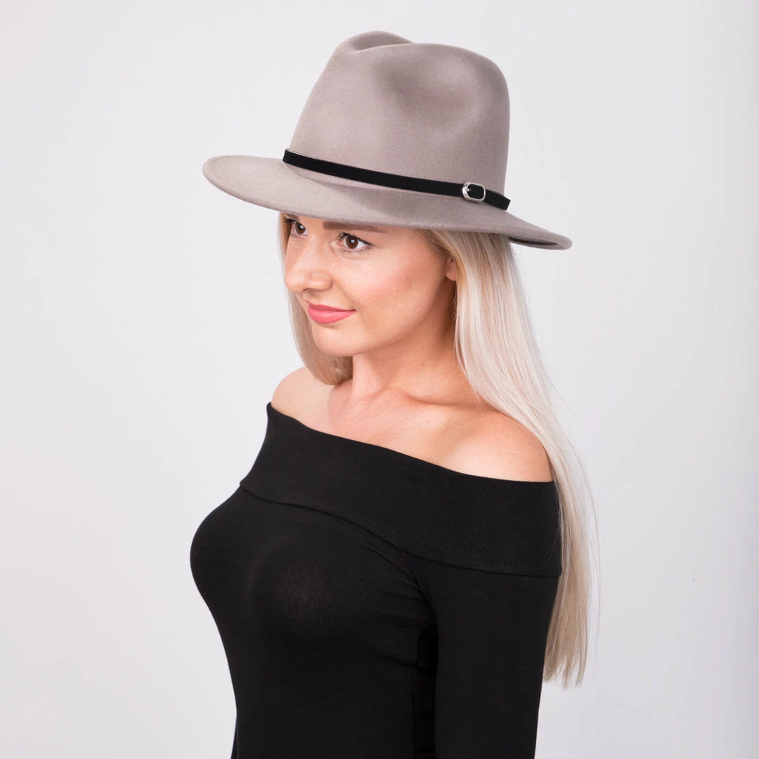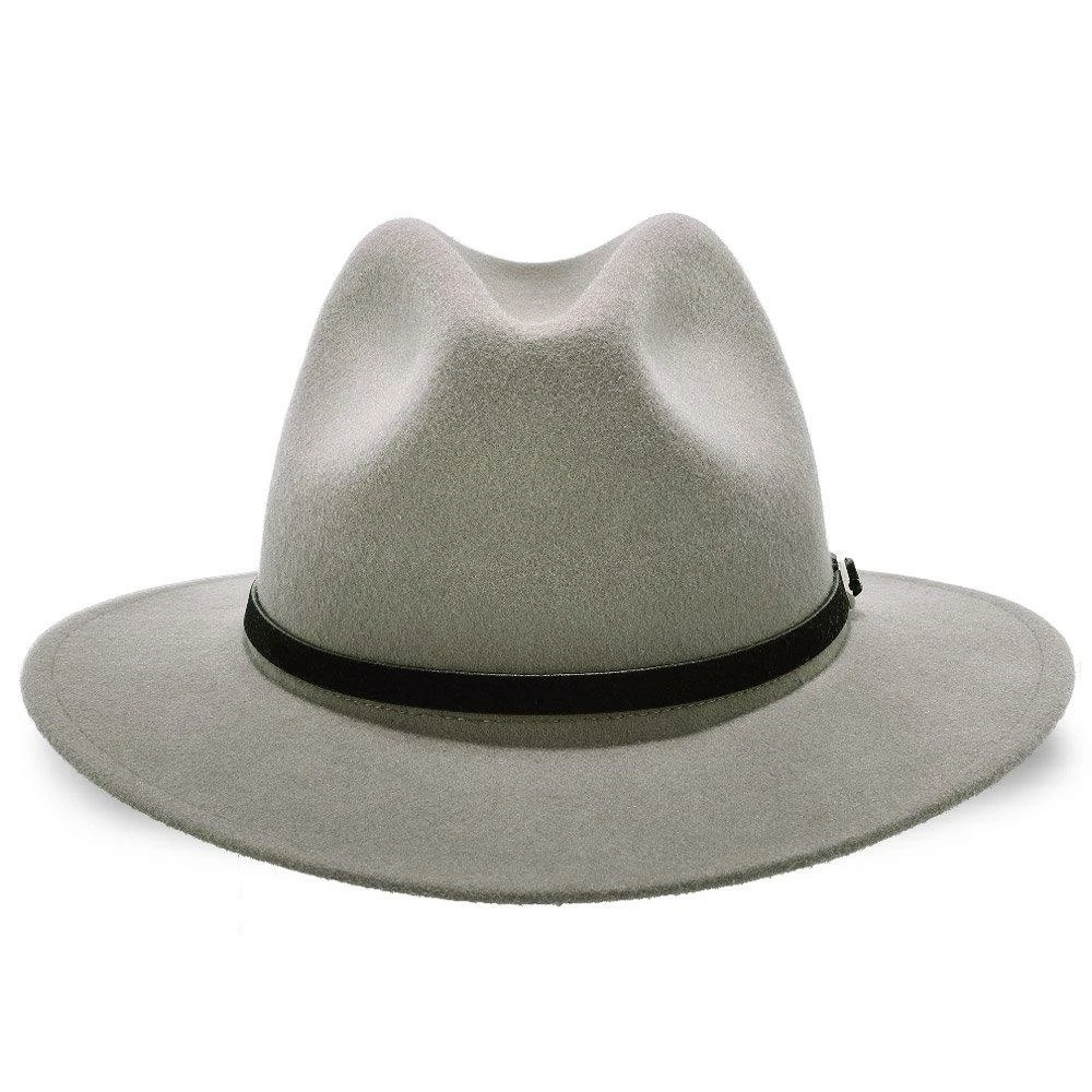 The Empire consists of a 100% Australian wool felt, features a center dent crown, 2 1/2″ brim, leather hat band with silver buckle and a faux leather sweatband.
