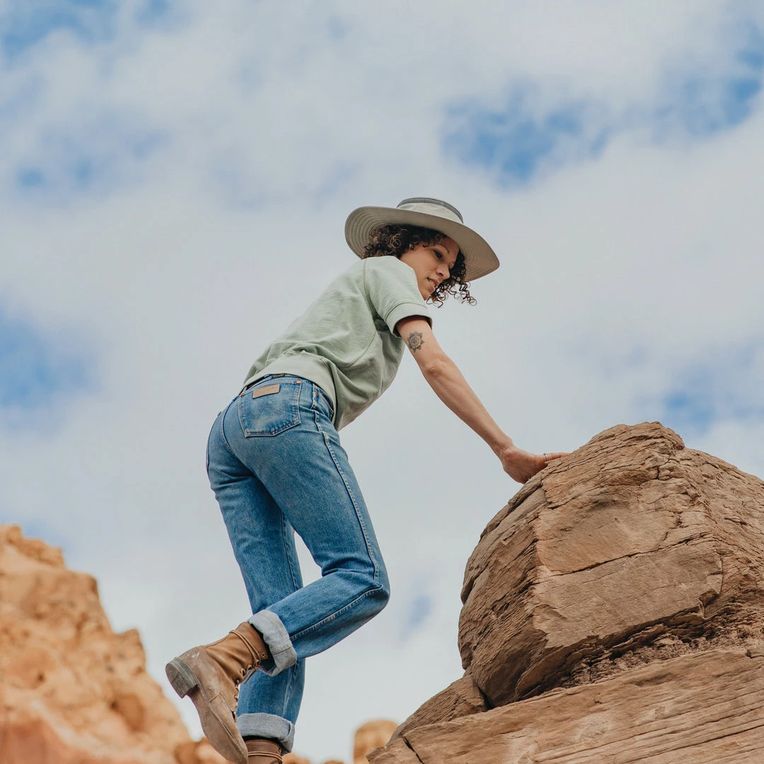 Keep the sun’s rays at bay! Our broad brim AIRFLO ยฎ Hat is ideal for those who make maximum sun protection a priority. A double brim wire adds stability to the brim of this remarkably lightweight Hat (weighing just 3.5 oz/99 g). We’ve also put in a 3/4″ mesh insert around the crown for added ventilation.
