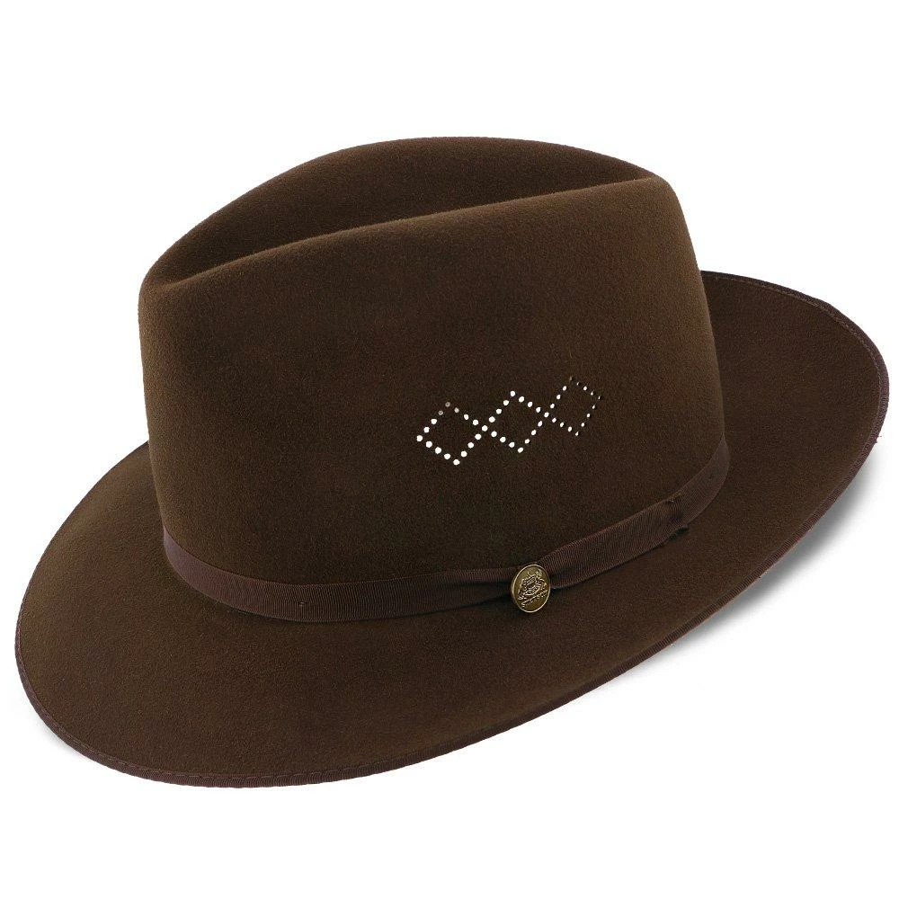 Just one look at MacGyver Stetson Fedora Hat will help you understand where it gets its name. It reminds you of the action star, Macgyver who was able to save the world with just duct tape and rope. Channel your inner action hero while wearing this fun fedora with its whimsical diamond design and hat pin. It has a wide brim and high crown for comfort as well as protection from the elements. A pair of jeans, loose t-shirt and this hat are the perfect outfit for a weekend in the mountains. It also works well with professional clothes like a suit or sport coat. This hat is the perfect addition to anyone’s wardrobe, whether you are male or female.