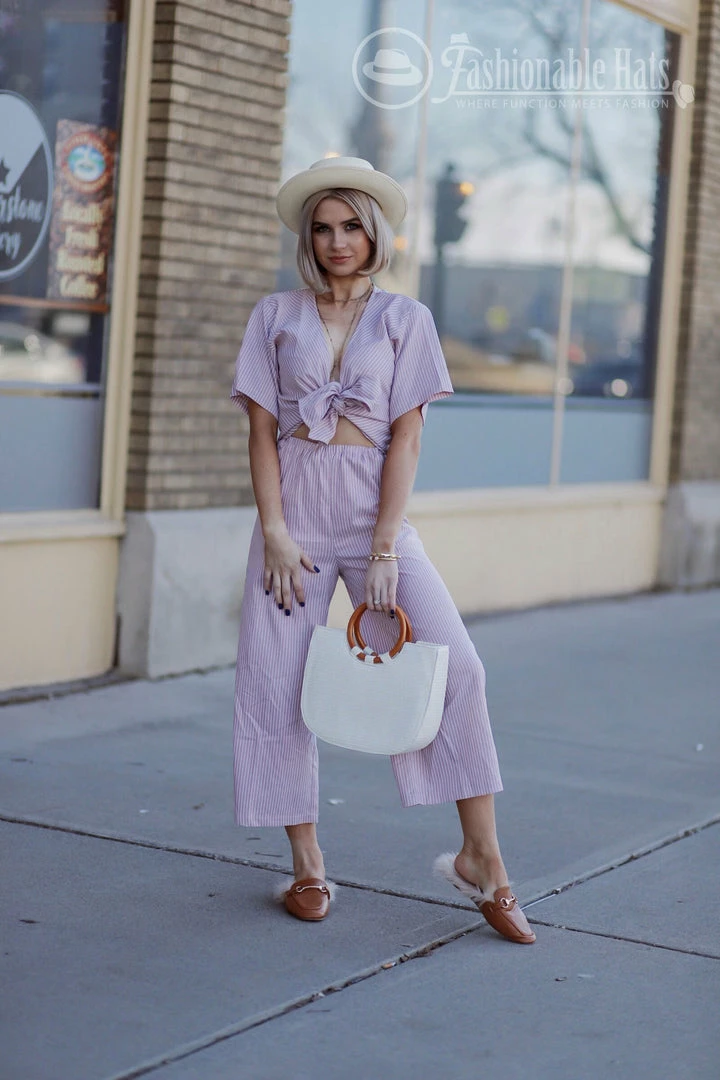 The dashing hat is made of light-weight panama, straw which will give you that “barely there” feel. The hat is perfect for keeping you cool and the sun off your face, while the cotton sweatband leaves you dry. A black hat band wraps the look, while the pinched front and teardrop crown provide the fedora an added flair and appeal.