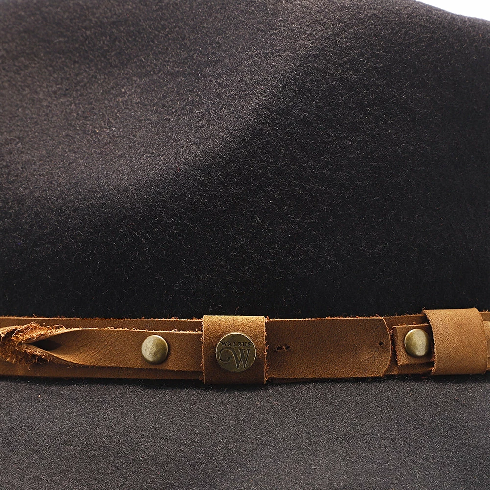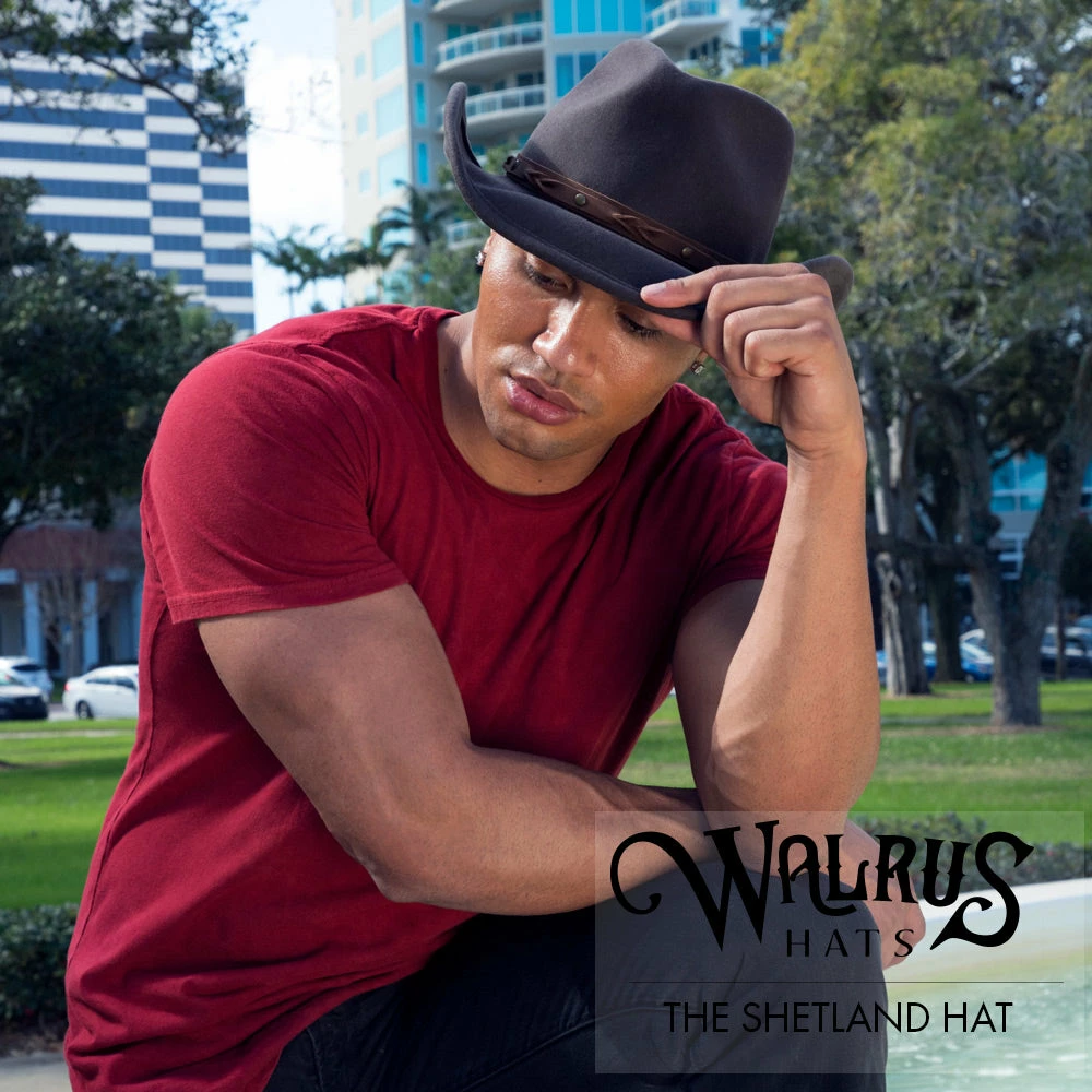 The Shetland consists of a 100% Australian wool felt, features a c-crown, 3 1/2″ brim, twisted leather hat band, cotton sweatband and a Walrus Hats pin.