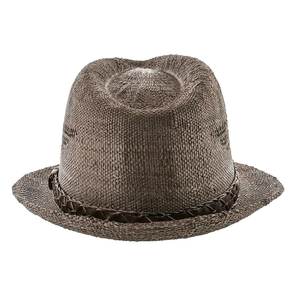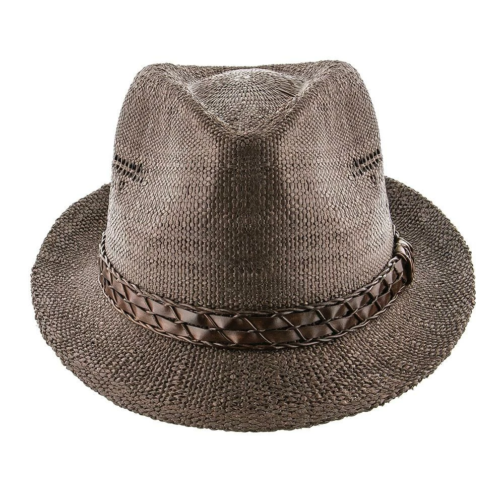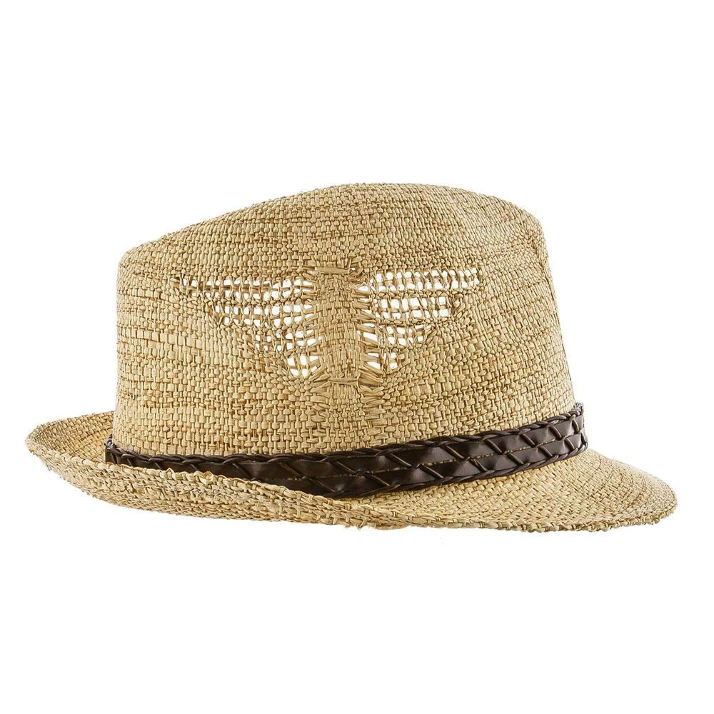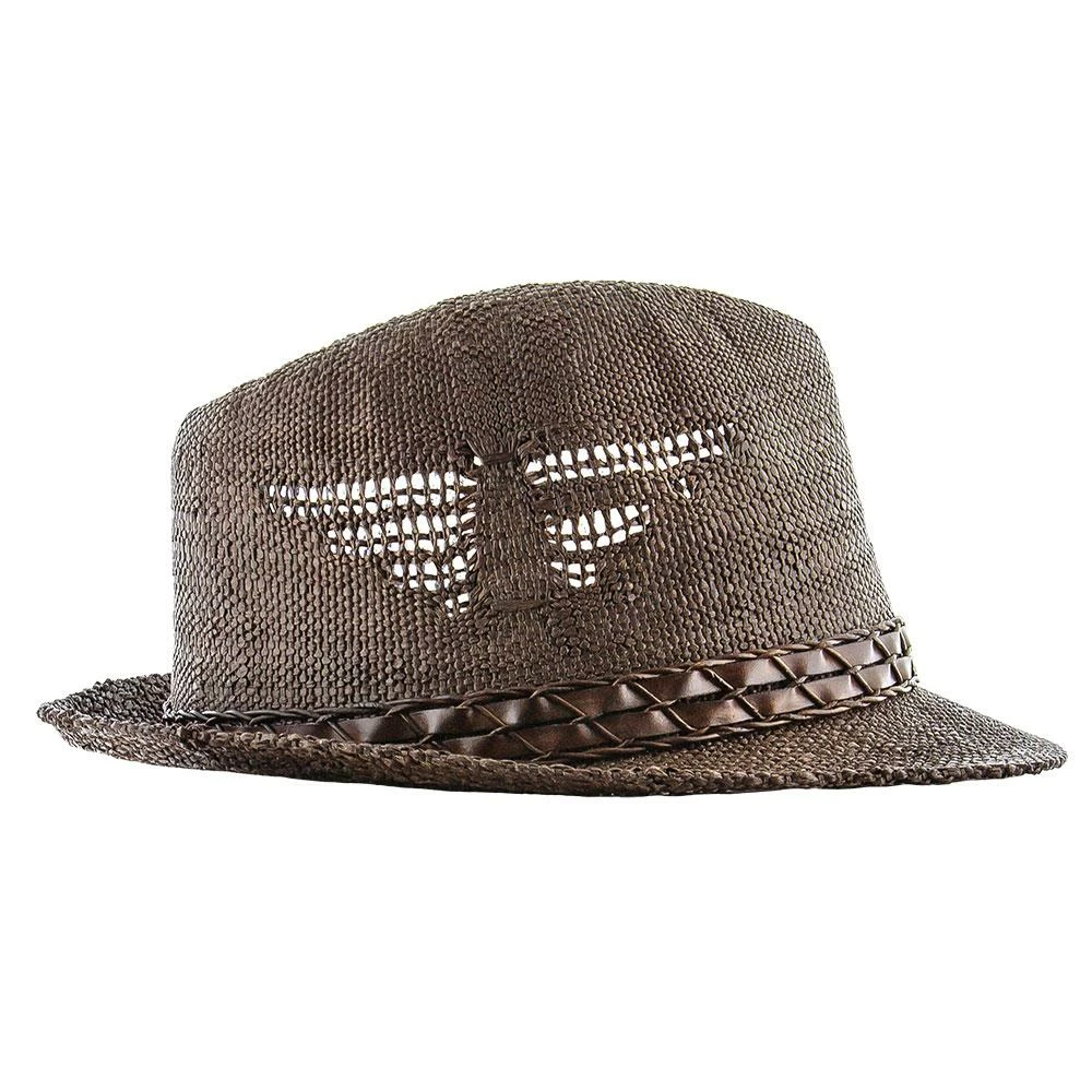 The tribal design is magnificently executed. It looks like a bird and has been woven into the hat to provide air to escape. It’s both functional and stylish. The trilby has a signature teardrop crown and a beautiful accenting strap giving a textured look to the hat.