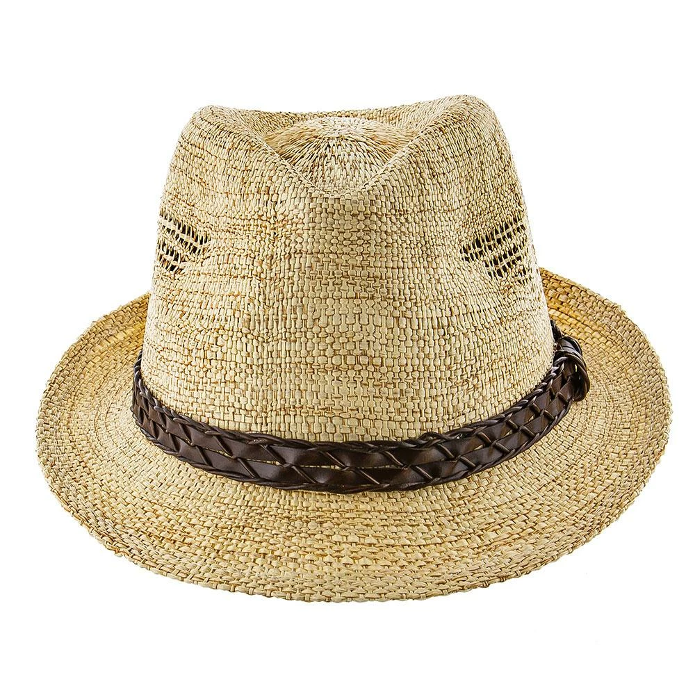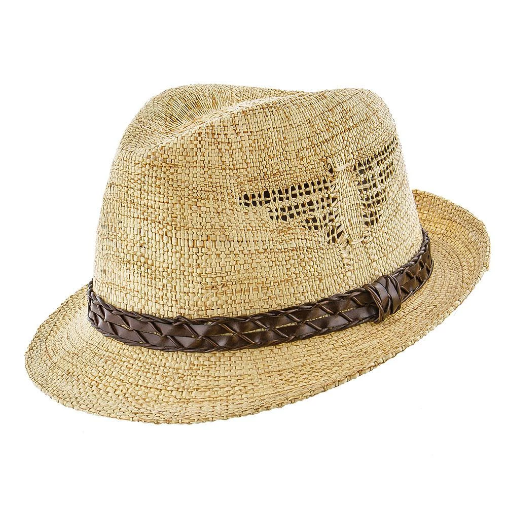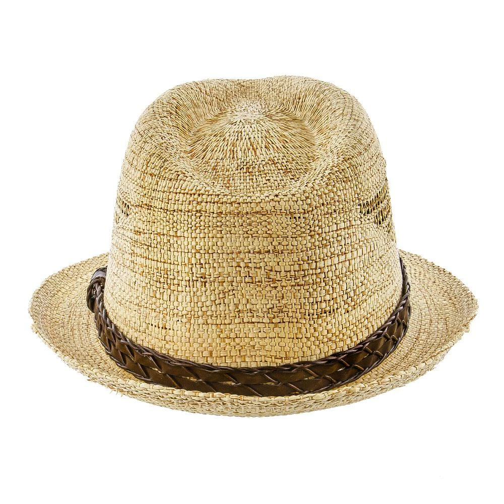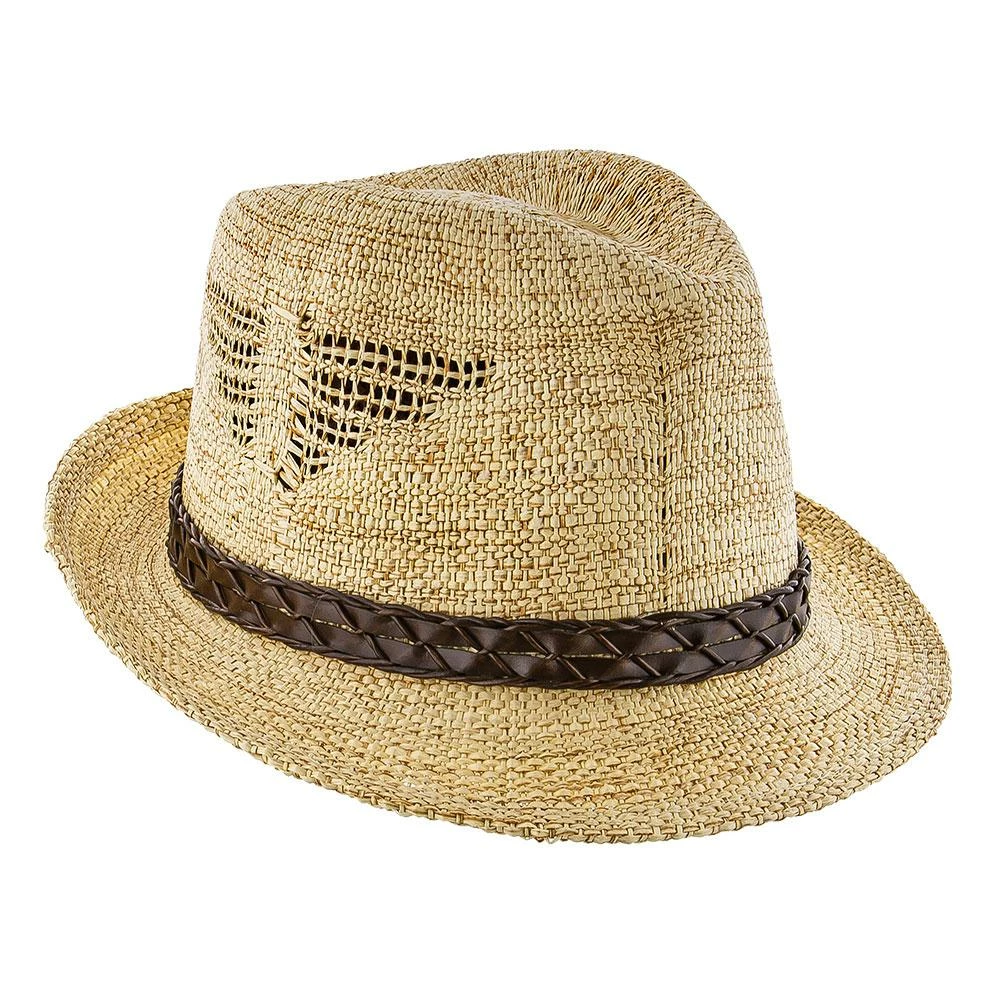 The tribal design is magnificently executed. It looks like a bird and has been woven into the hat to provide air to escape. It’s both functional and stylish. The trilby has a signature teardrop crown and a beautiful accenting strap giving a textured look to the hat.