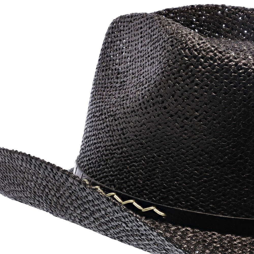 Go back to the wild, wild west, with the Onyx Twisted Paper Straw Hat by Stetson. Part of the Stetson Rodeo Drive Collection, his hat is perfect for your next rodeo event, line dance, or a night out on the town. The hat is made of twisted paper straw and provides a flexible structure and shapeable brim. A thin, leather band is wrapped around the brim. If youโre wearing the hat during the hot summer or spring seasons, the band inside the hat is made from DRI-LEXยฎ technology which absorbs moisture