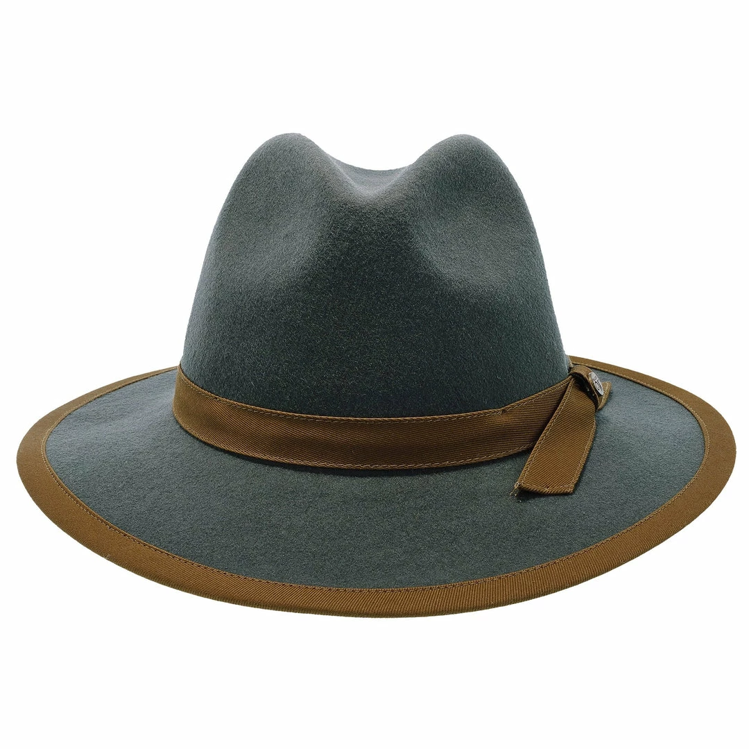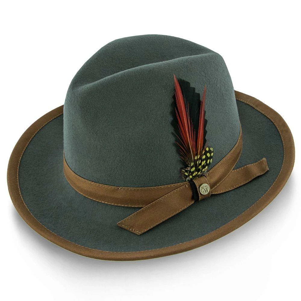 The Pinnacle consists of a 100% Australian wool felt, features a center dent crown, 2 1/2″ brim, grosgrain ribbon cloth hat band, cotton sweatband, removable feather and Walrus Hats pin.