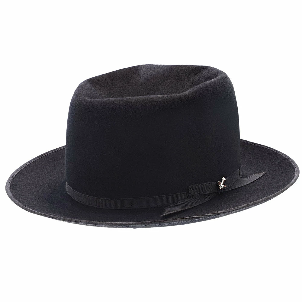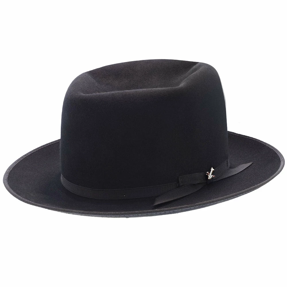 No dress hat beats the Stratoliner for understated character and stately presence. Made from high-quality felt and dyed in versatile shades perfect for all occasions, this fedora features a flattering open crown. The classic styling is underscored by details like a grosgrain hat band, special edition Stratoliner airplane hat pin, and an interior roan leather sweatband.
