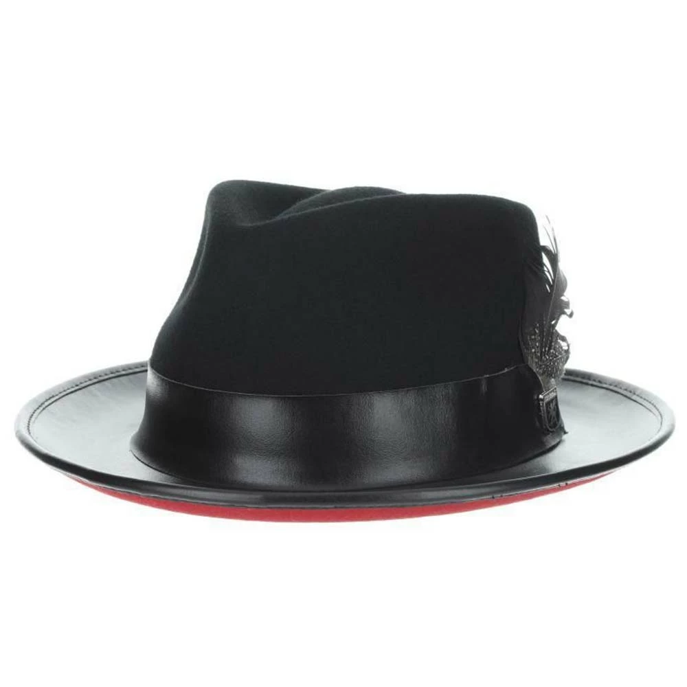 Wool Felt Teardrop with Faux Suede 2″ Brim | Faux Suede Band, Contrast Underbrim, FeatherΒ | Faux Leather Sweatband