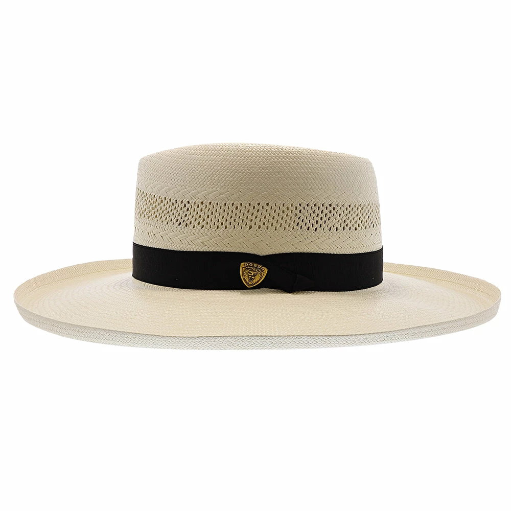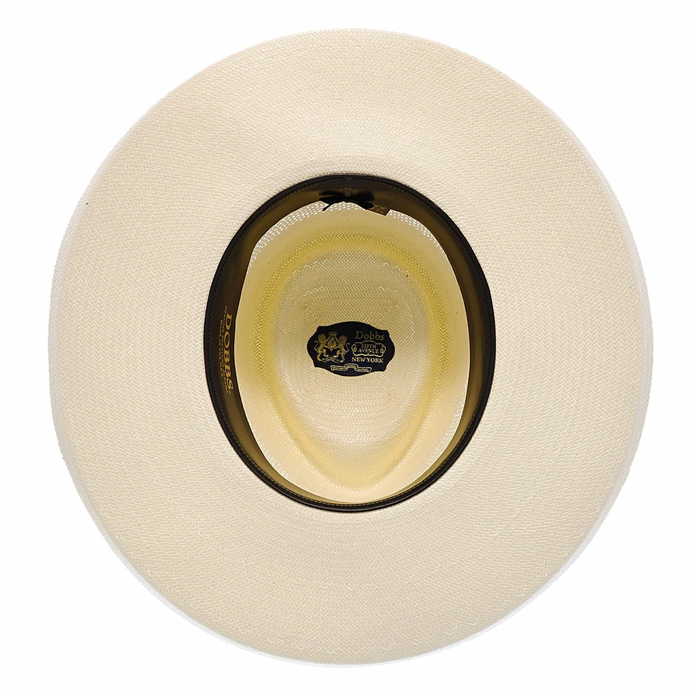 San Juan Vented Shantung Straw Fedora Hat by Dobbs. Constructed with a firm finish shantung straw and cowhide sweatband.