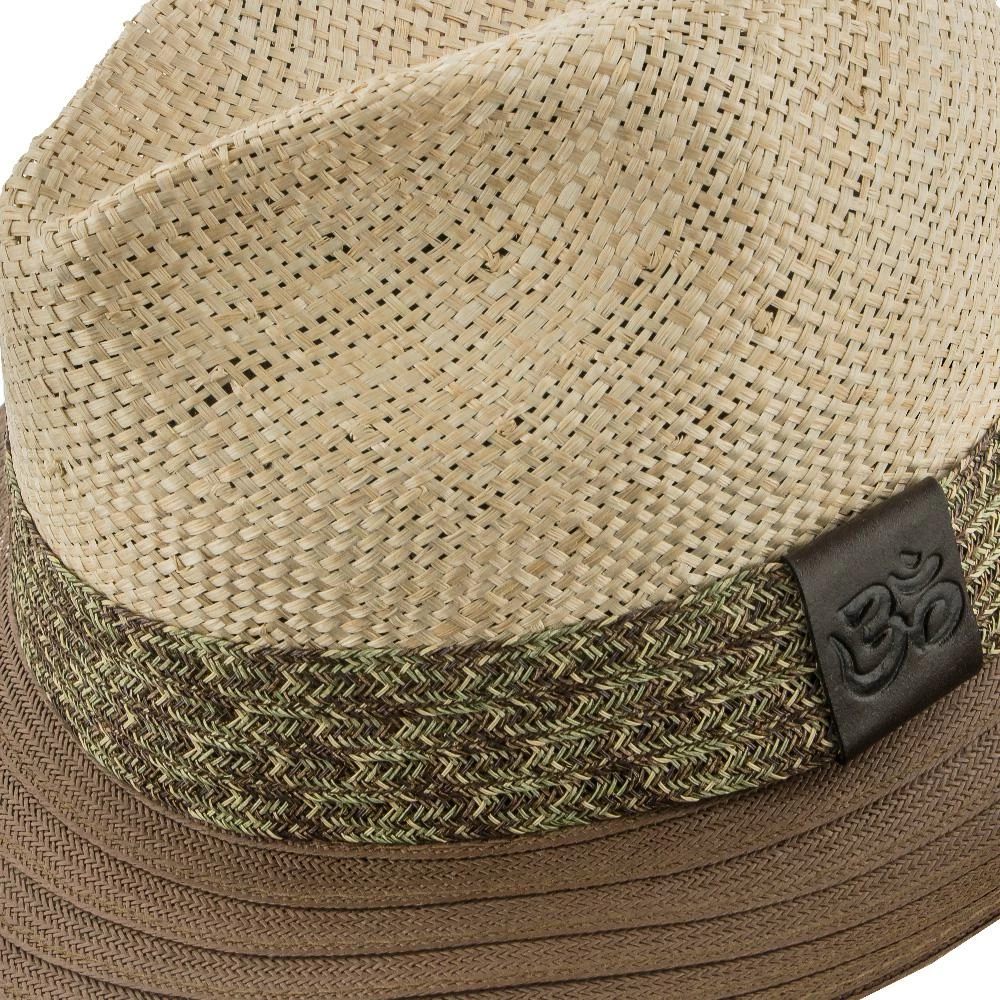 The top of the hat is a sturdy straw, where the nice details of a center dent crown and front pinch lay. The brim is made of hemp, and allows for greater flexibility, being woven into a smart overlapping design. The hatband has a greenish hue, being interwoven with matching brown, tan, and green dyed straw. Inside there’s a stretchy sweatband to give the hat some play and allow for an easy fit.
