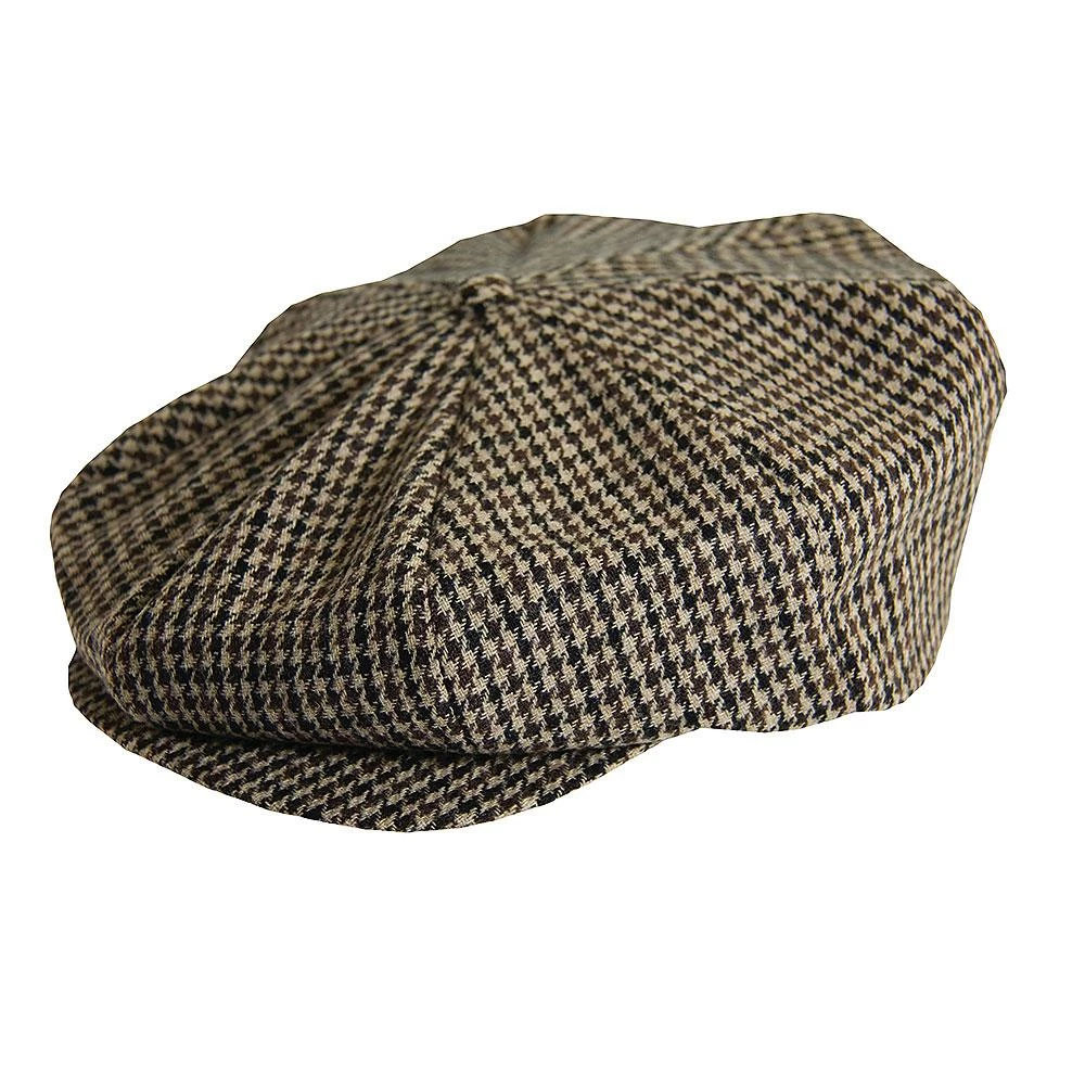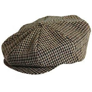 The Stacey Adams brown wool tweed newsboy cap has arrived. The classic eight panel signature design, with secure central button, are woven beautifully in the black and brown houndstooth pattern.