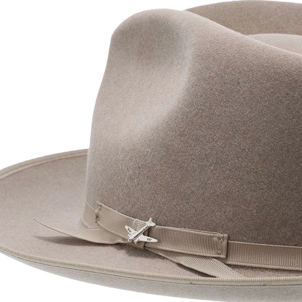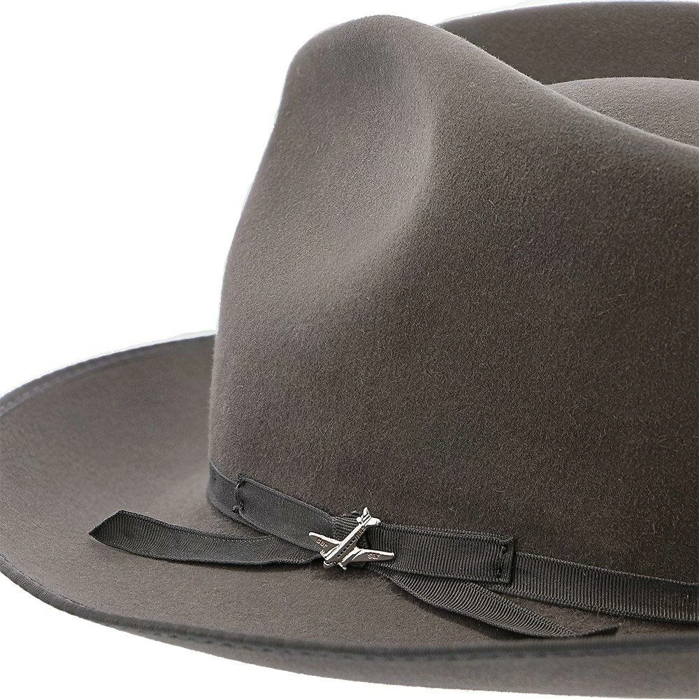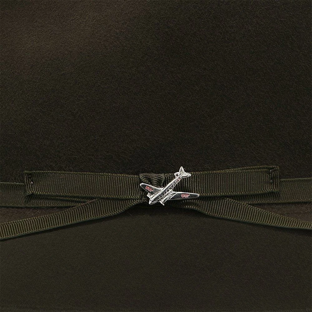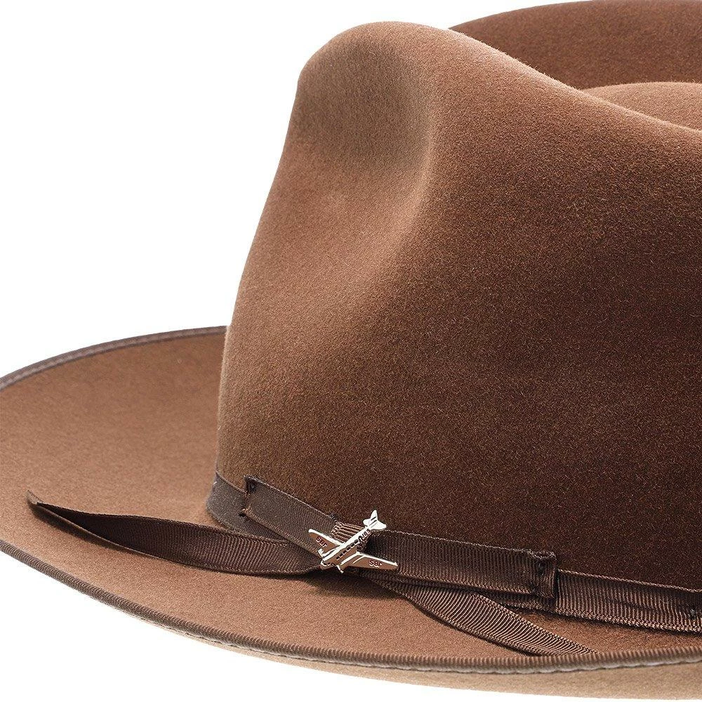 No dress hat beats the Stratoliner for understated character and stately presence. Made from high-quality felt and dyed in versatile shades perfect for all occasions, this fedora features a flattering teardrop crown. The classic styling is underscored by details like a grosgrain hat band, special edition Stratoliner airplane hat pin, and an interior roan leather sweatband.