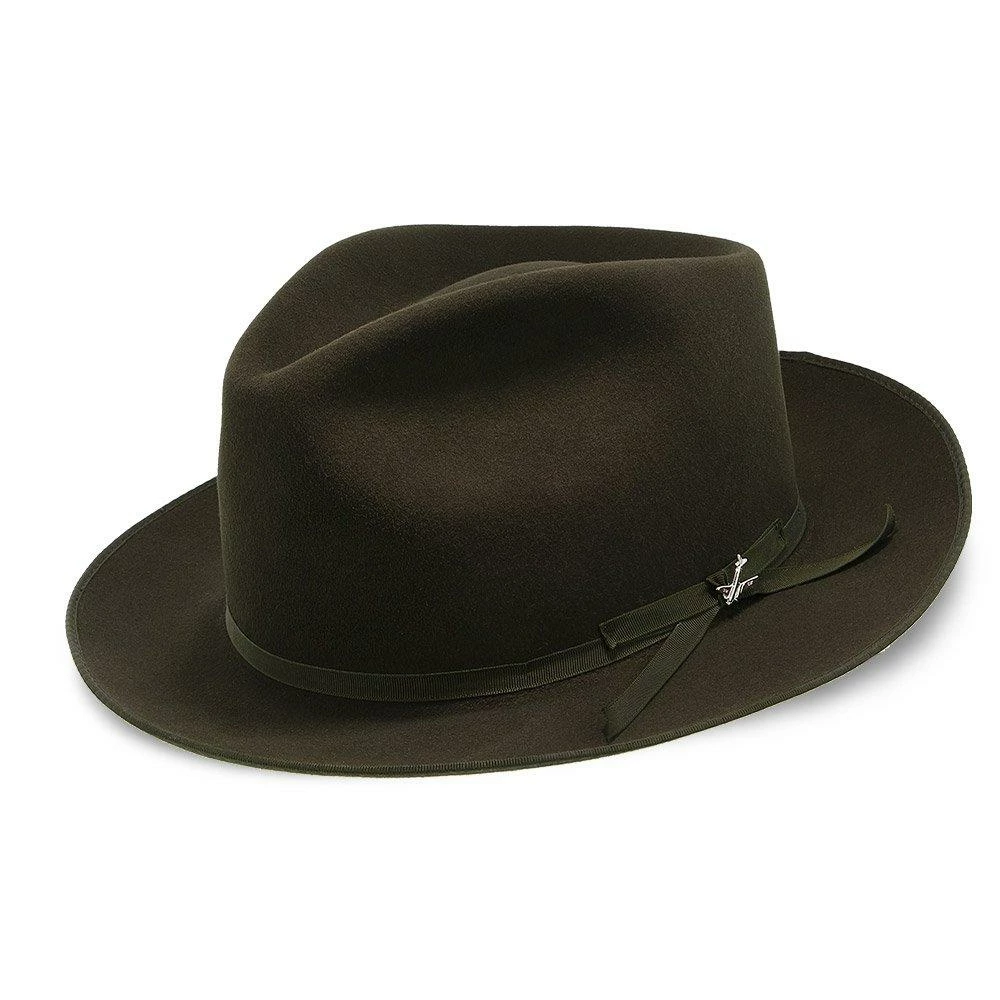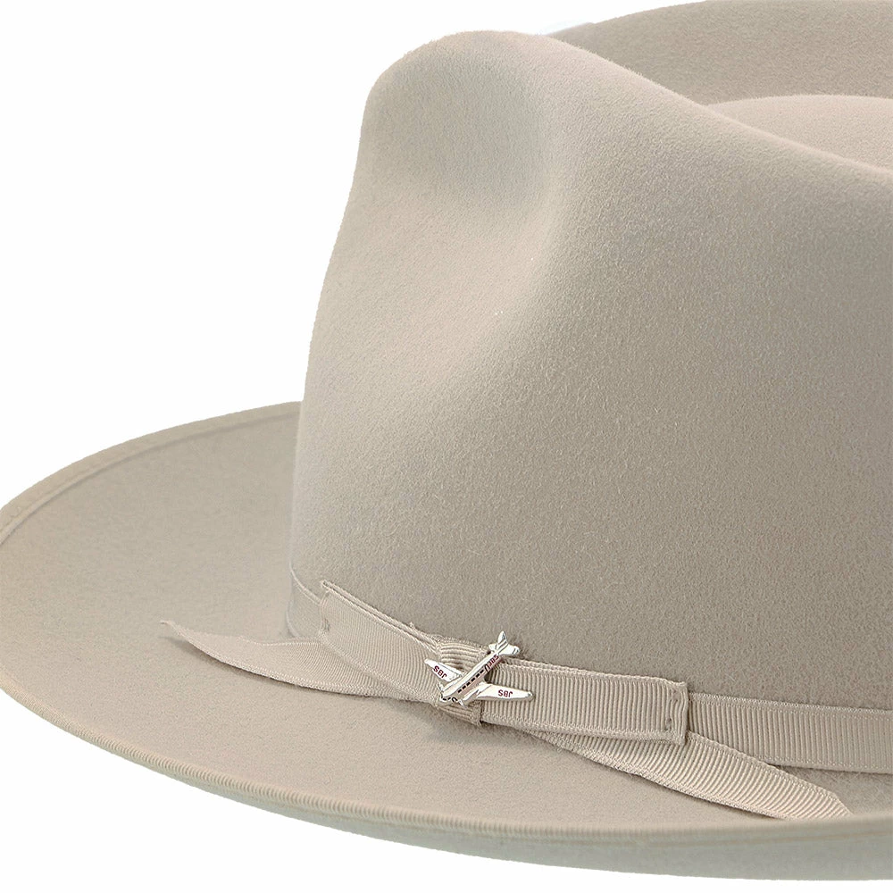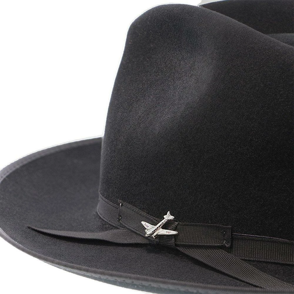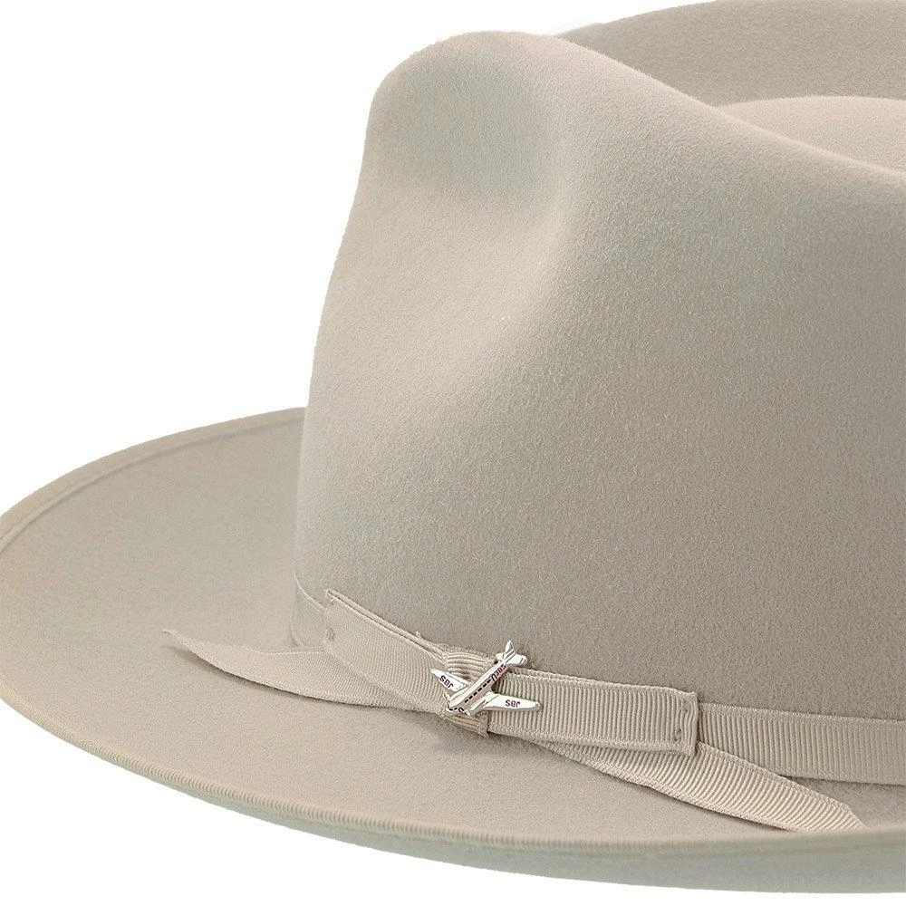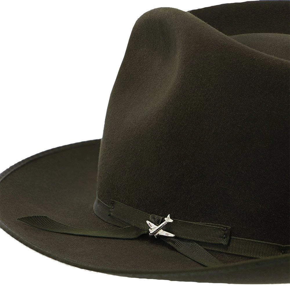 No dress hat beats the Stratoliner for understated character and stately presence. Made from high-quality felt and dyed in versatile shades perfect for all occasions, this fedora features a flattering teardrop crown. The classic styling is underscored by details like a grosgrain hat band, special edition Stratoliner airplane hat pin, and an interior roan leather sweatband.