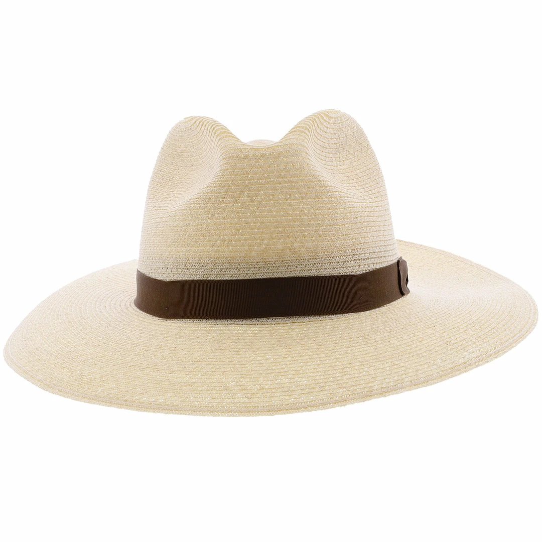 Ideal for warm weather and crafted with 100% hemp straw braid. The Sundowner accents its elongated tear drop crown with a rich brown grosgrain ribbon hat band with side bow and Stetson pin. Proudly made in Garland, Texas.