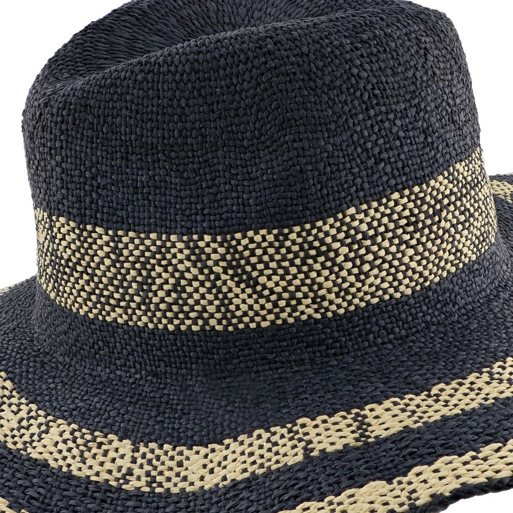 The floppy fedora in navy blue and beige is a great hat for women who really want to stand out from the crowd. It is made of raffia and toyo and comes in one size. The brim is three and one quarter inches and there is a drawstring so you can comfortably adjust the hat to your best fitting. It can be both stylish and practical in shading your face from the sun’s rays during the spring and summer. Wear it to the track, the beach or even while on a day out with the girls. Wear your favorite sundress with this great fedora.