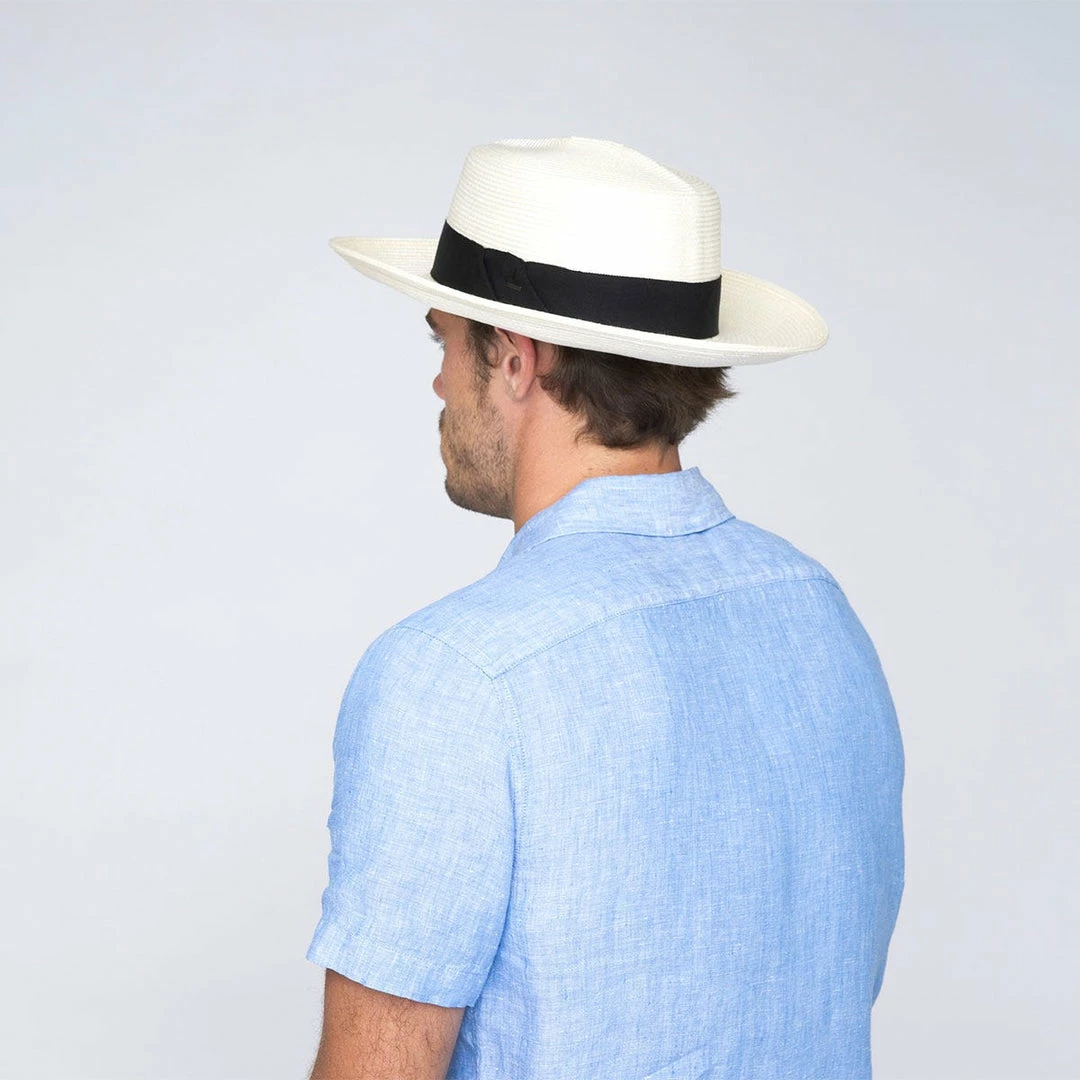 The Tim features an optimo crown and wide brim that is quite the stunner. We used the highest quality braid in a solid color and finished it with a wide grosgrain ribbon that has our signature double diagonal folded finish.