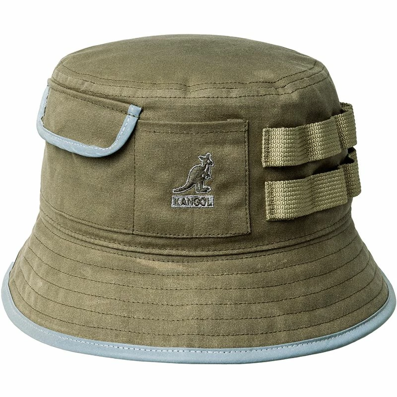 The Waxed Utility Bucket is a multi-functional bucket hat that is meant to last and protect. The waxed coating allows for water repellency, while giving it a cool worn–down effect the more you wear it. We added some key pocketing for small items, and utility loops that are MOLLE compatible in case you want to attach components to it. A reflective binding was added to the brim and pocket flap for night time visibility and we finished it with our Kangol – Kangaroo logo on the front.