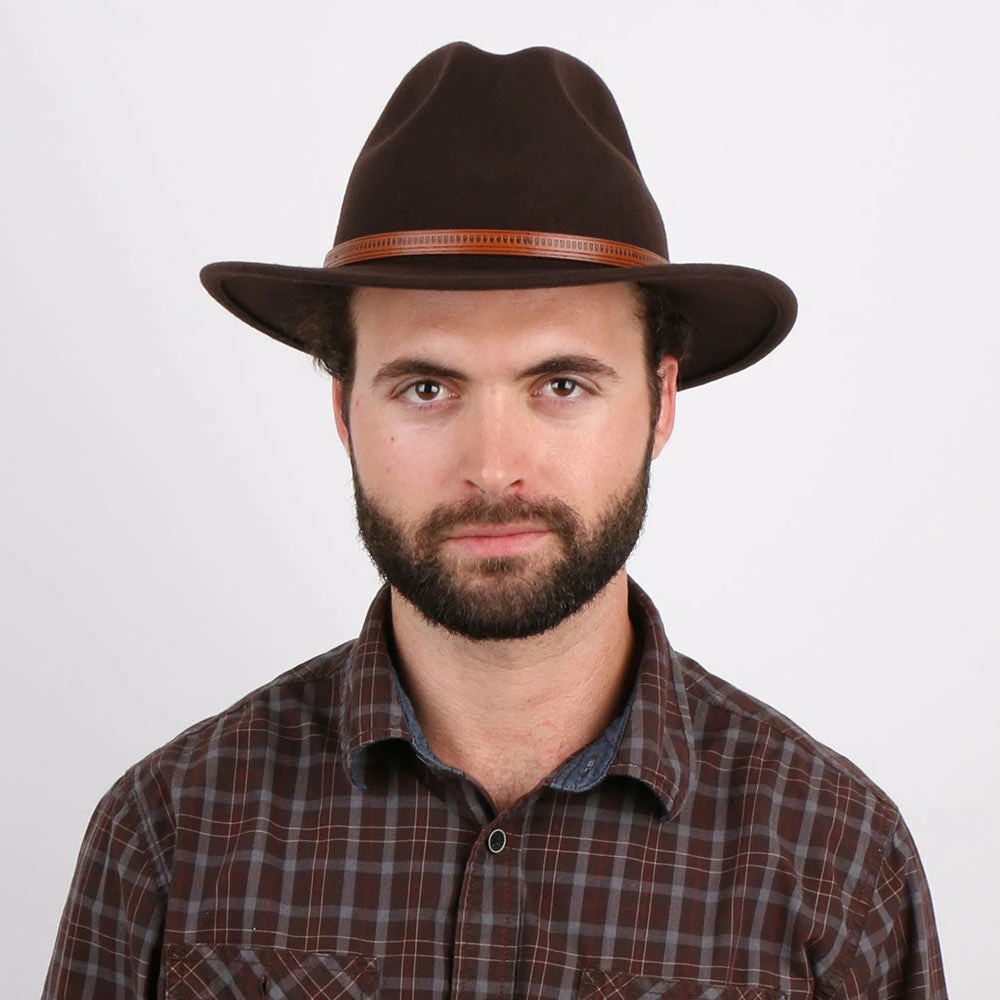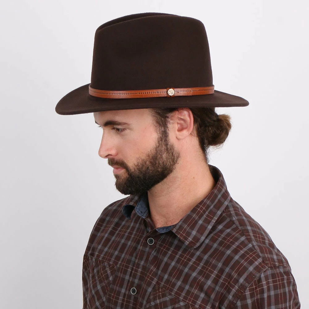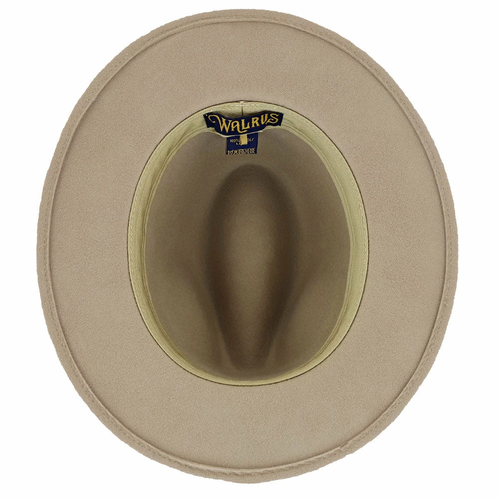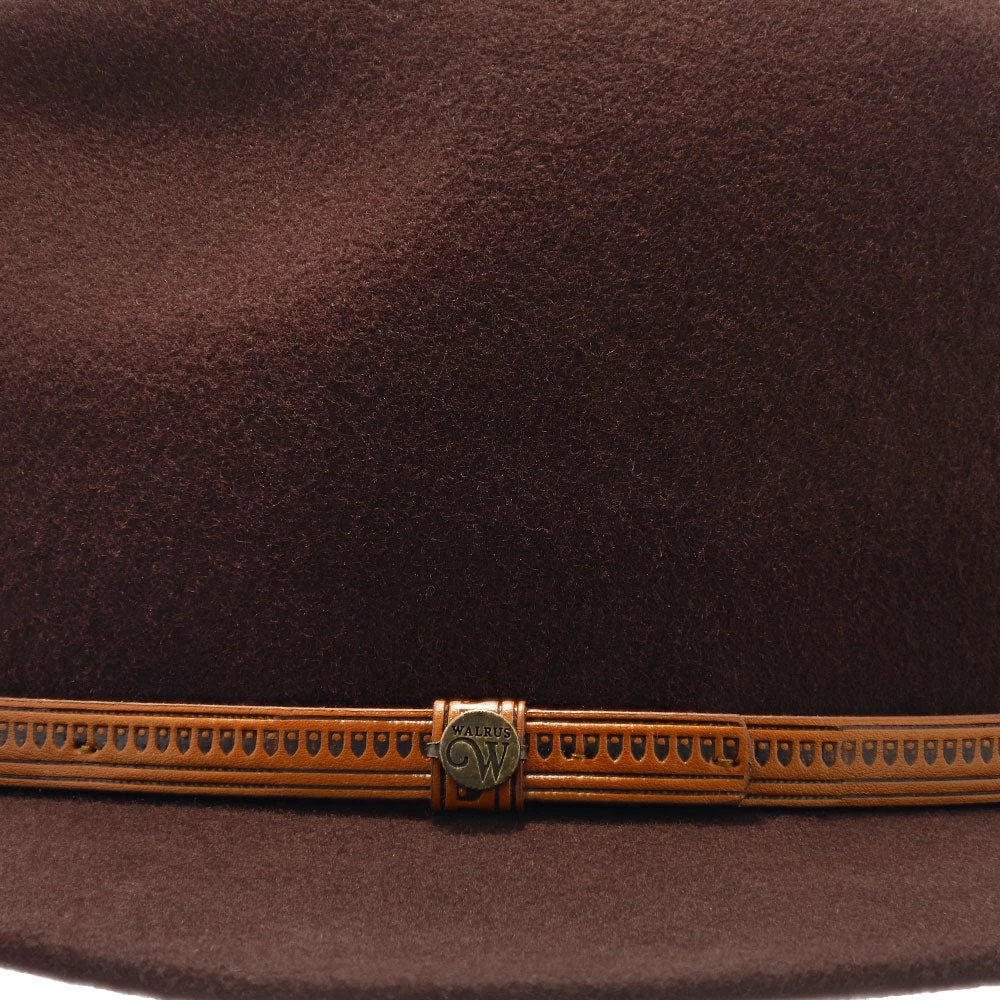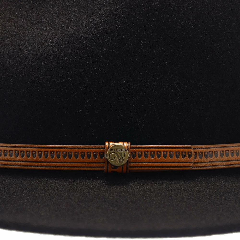 The Jurassic consists of a 100% Australian wool felt, features a center dent crown, 2 3/4″ brim, leather hat band, cotton sweatband and a Walrus Hats pin.