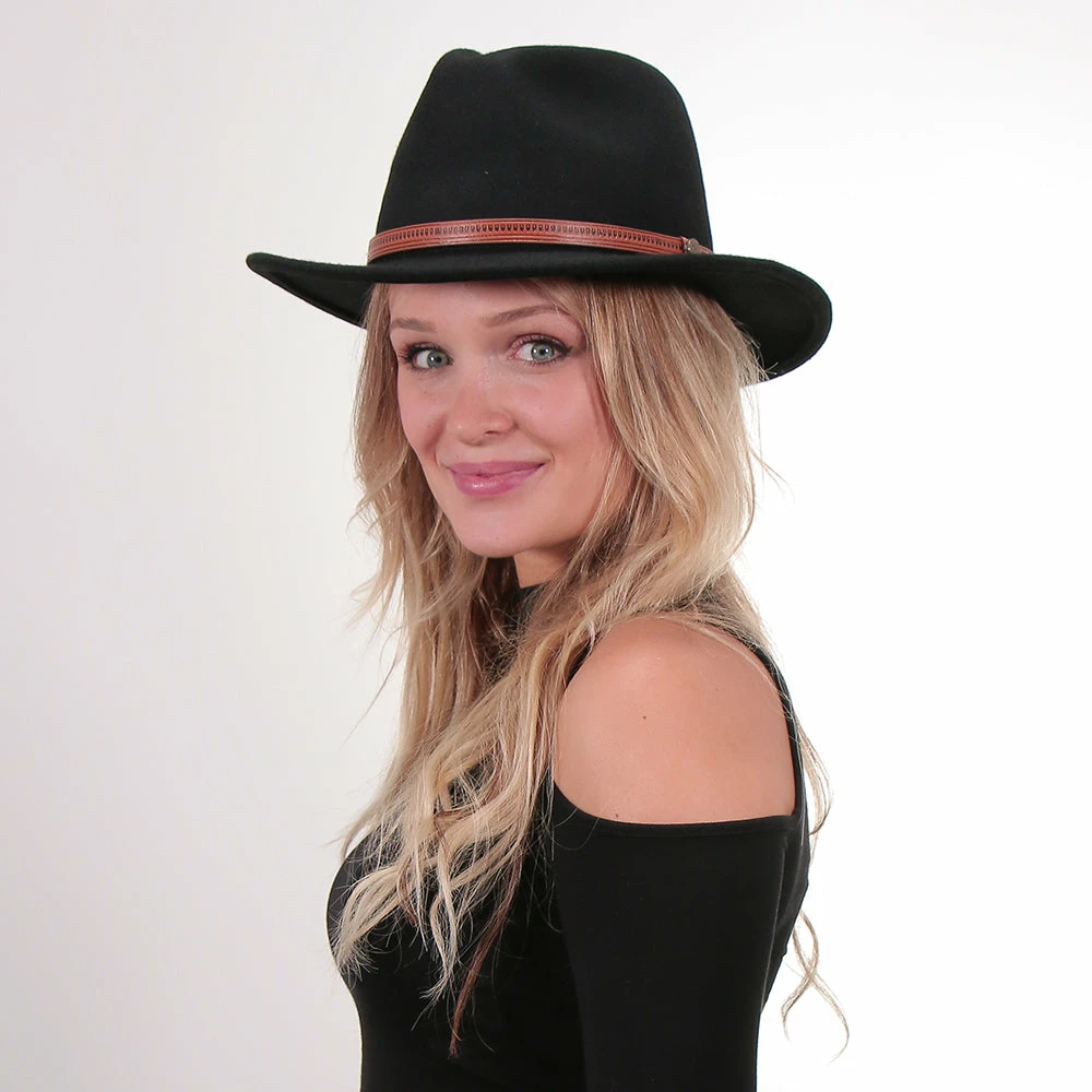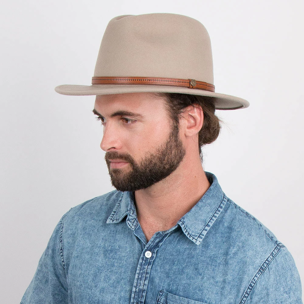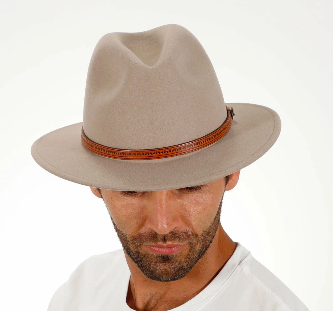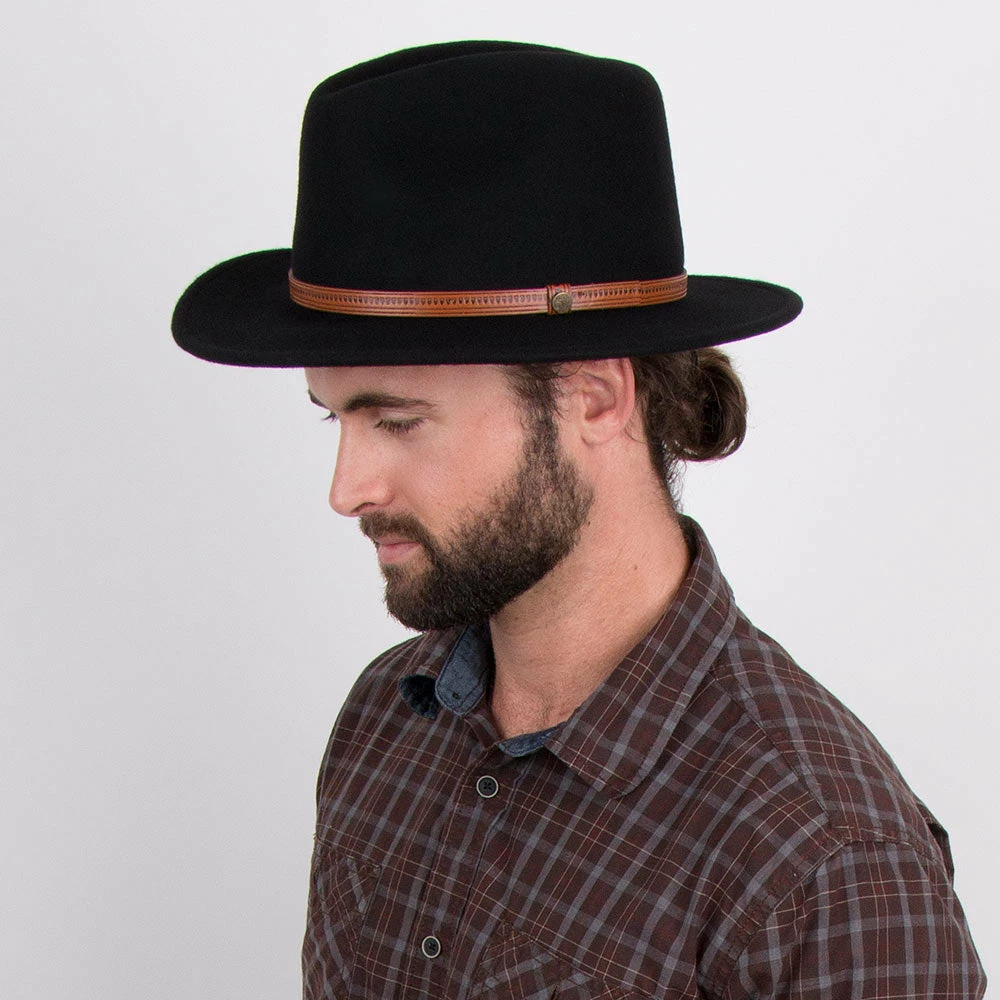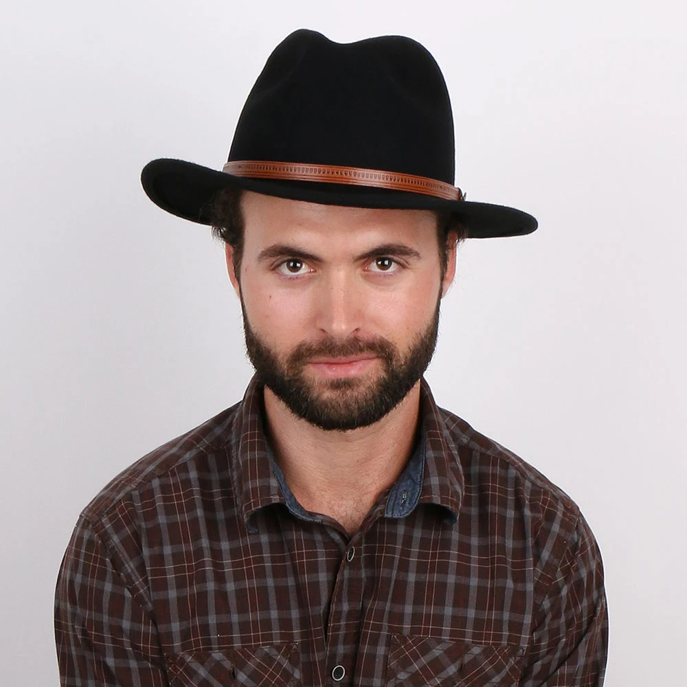 The Jurassic consists of a 100% Australian wool felt, features a center dent crown, 2 3/4″ brim, leather hat band, cotton sweatband and a Walrus Hats pin.